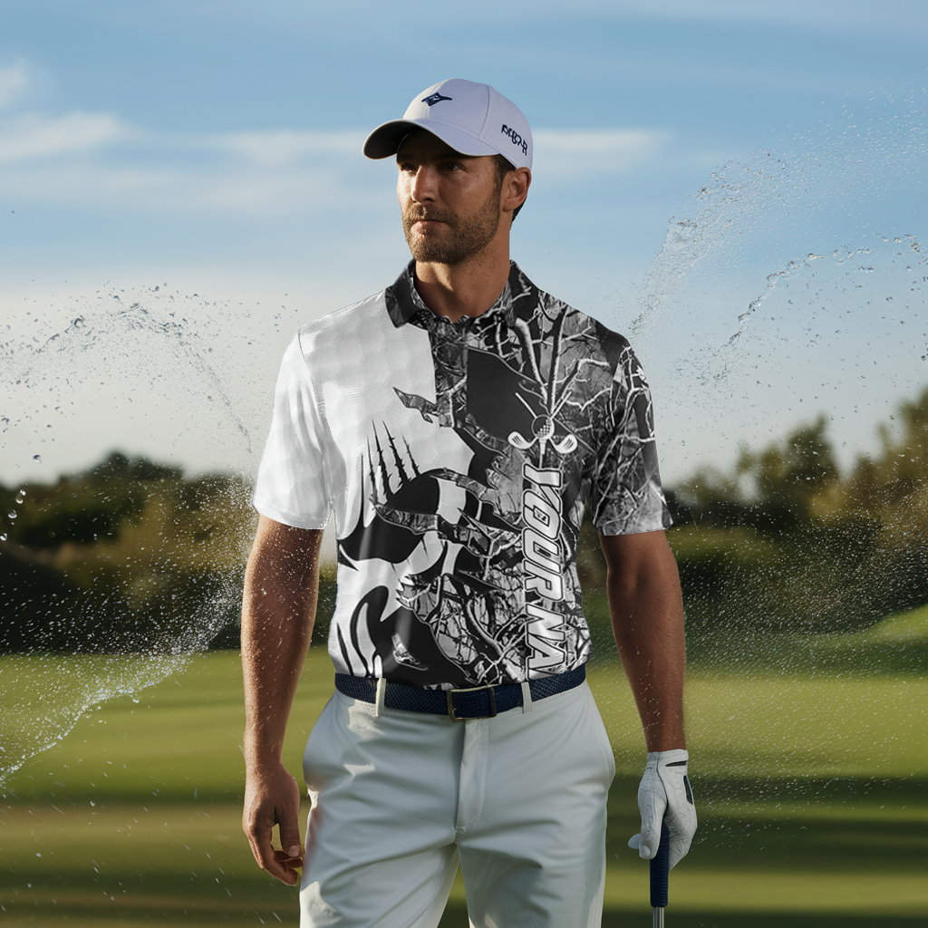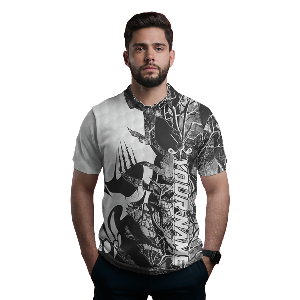 Personalisierte Graue Camouflage Golf-Polo-Shirt für Männer mit Totenkopf-Design - Das perfekte Golfgeschenk N6998