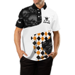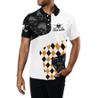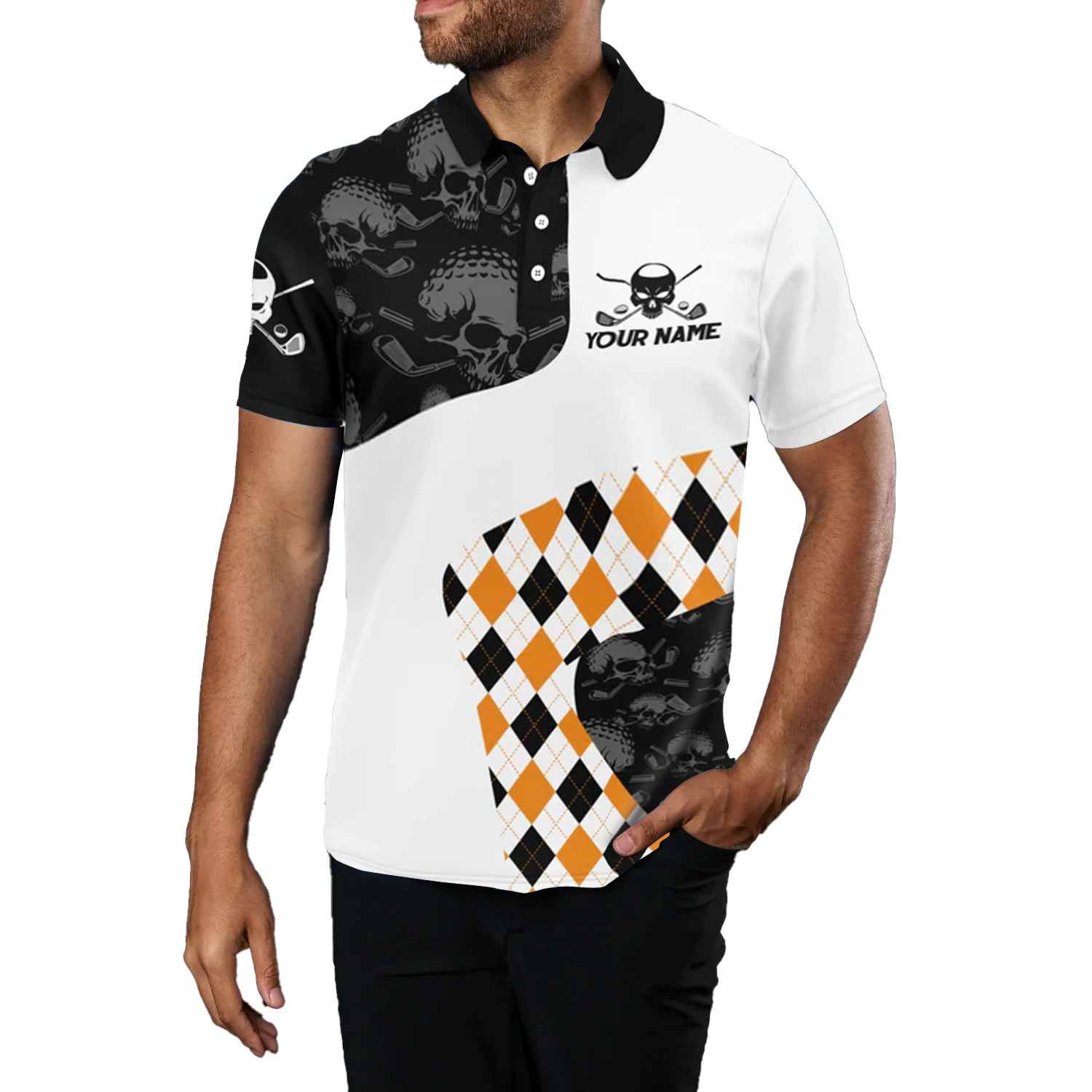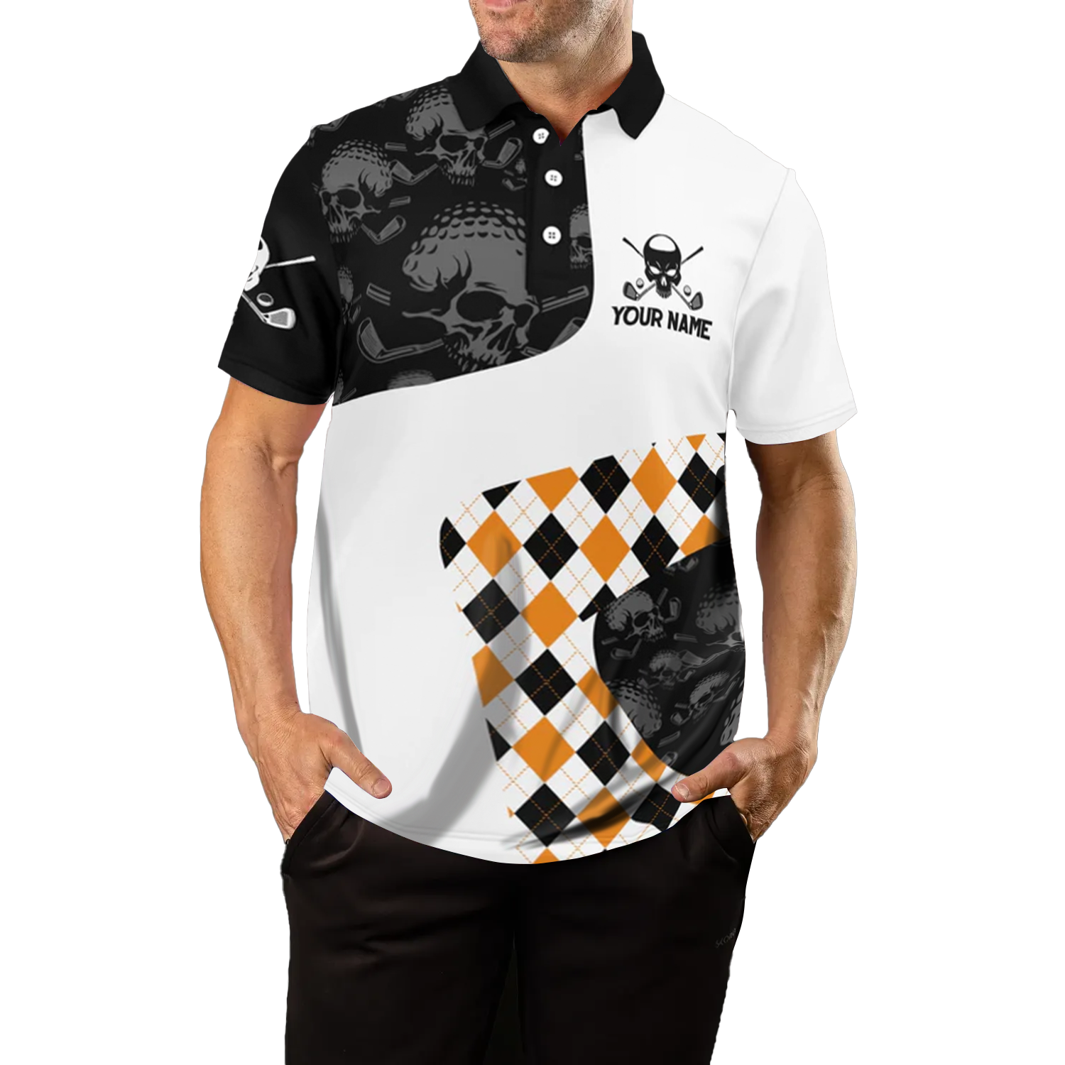 Herren Halloween Poloshirt mit orangenem Karomuster und Totenkopf-Motiv L0545