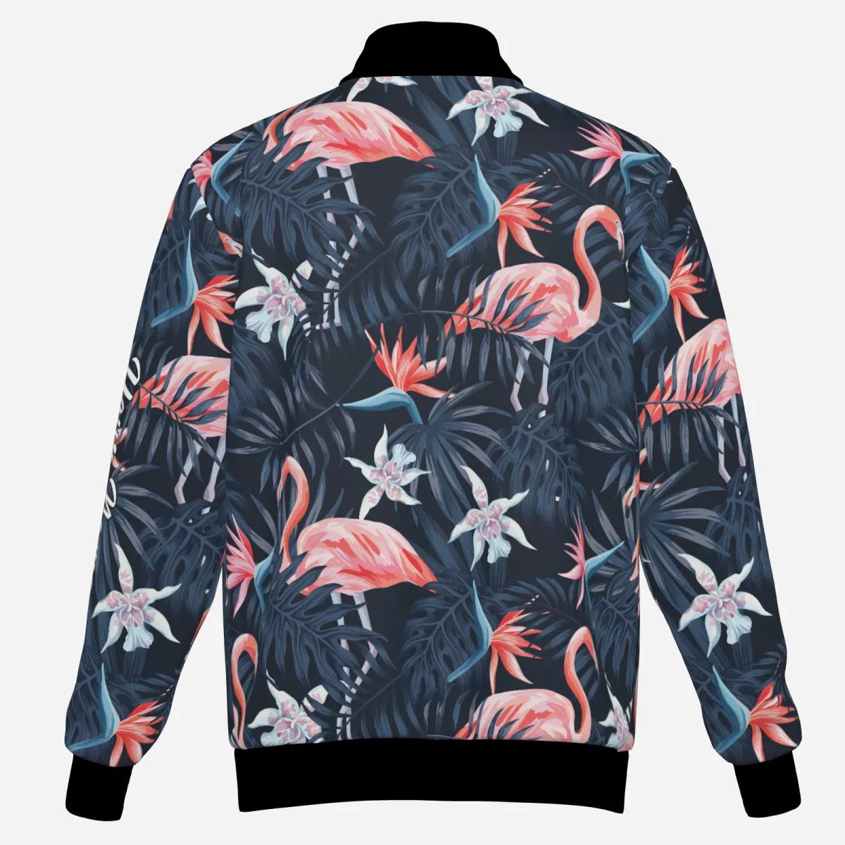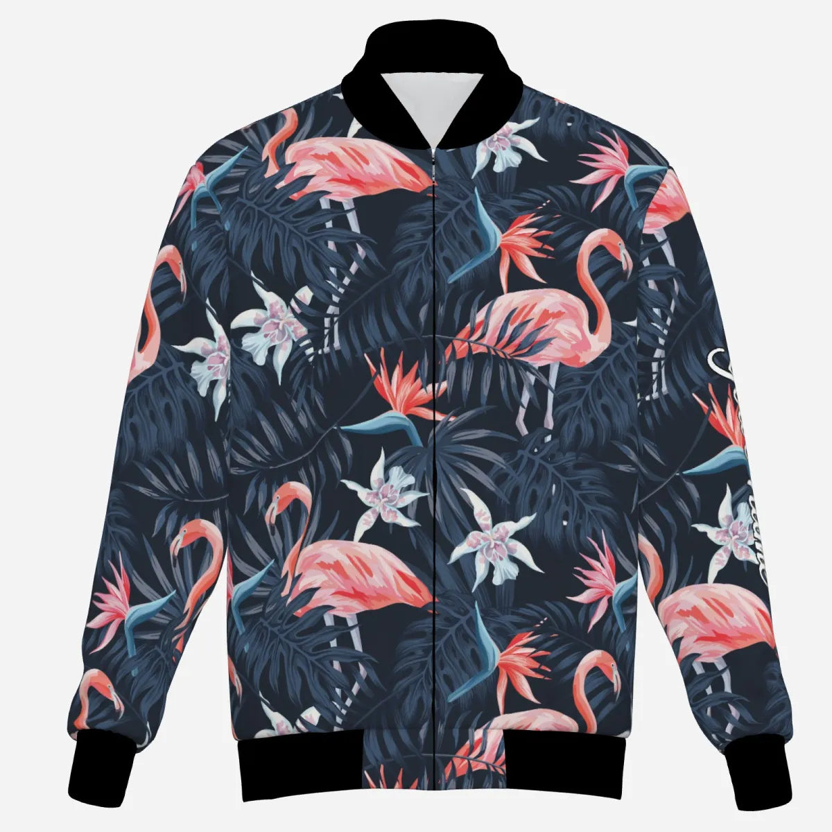 Herren Golf Jacke – Exotische Vögel, Pinke Flamingos und Dunkelblaue Palmenblätter N3694