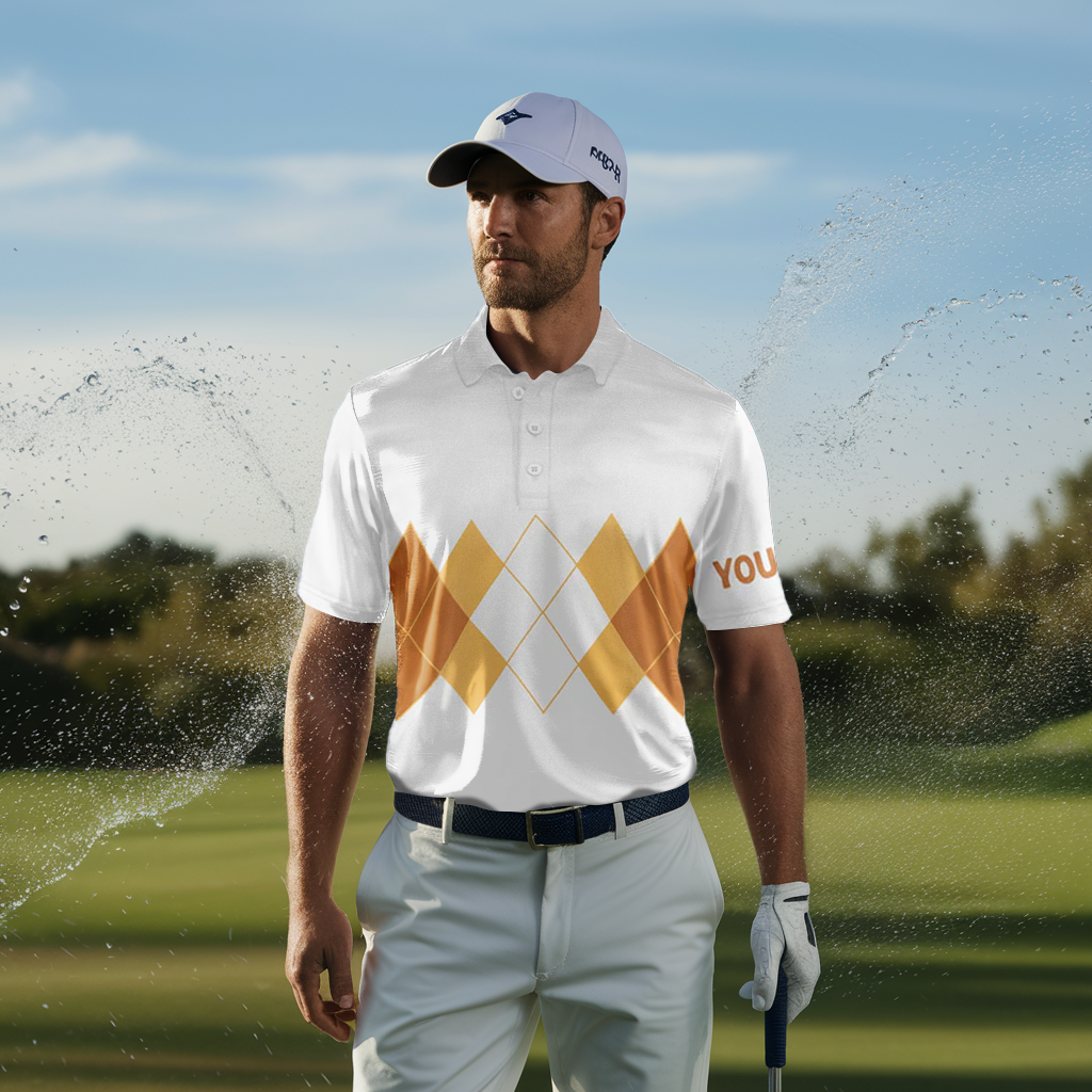 Herren Poloshirt in Gelb mit Argyle-Muster - Perfekt für Golf & Whisky-Liebhaber L0949
