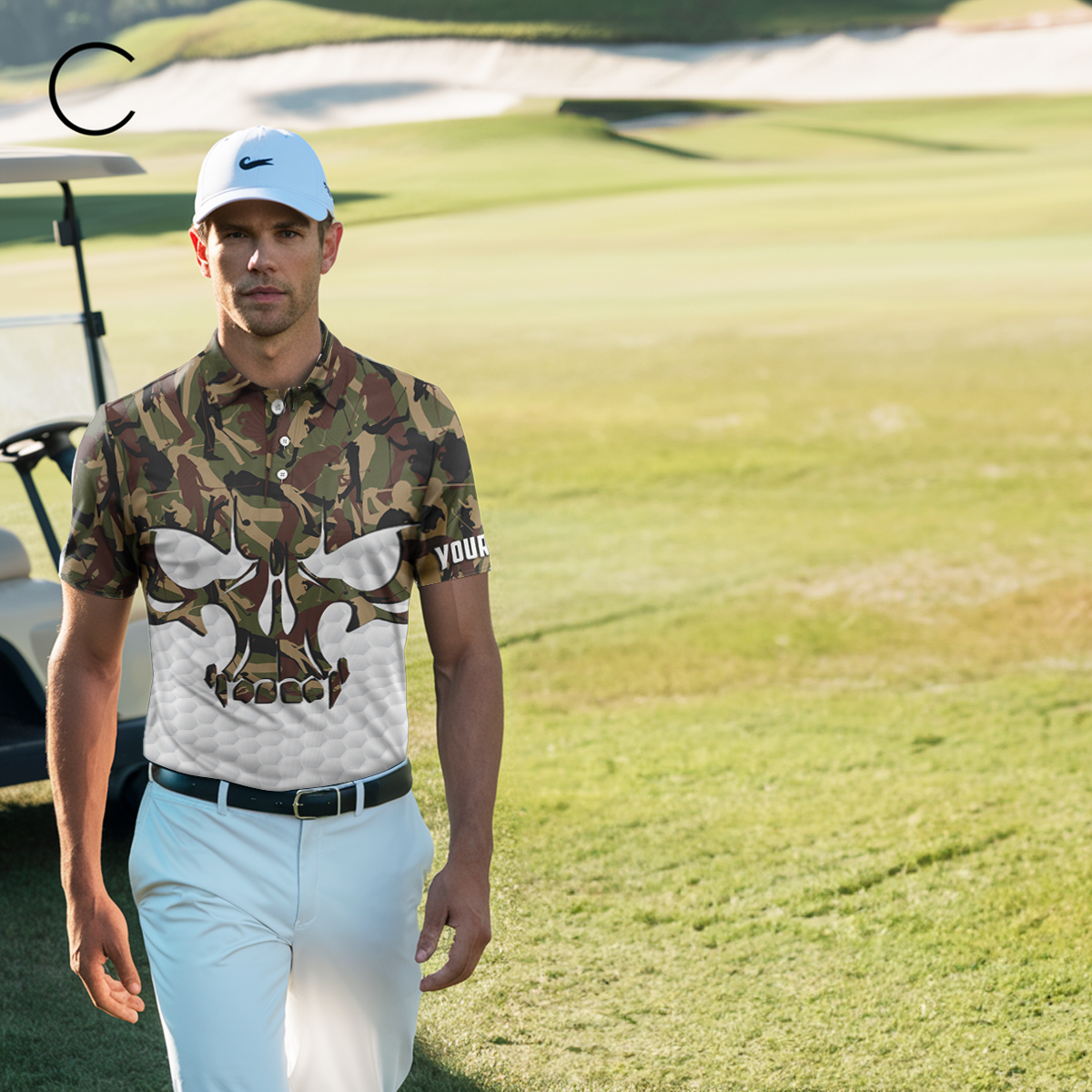 Herren Langarm Camo Golf Polo mit Totenkopf - Individuelle Golfbekleidung für Golf-Enthusiasten - Perfekte Geschenke für Golfer N3342