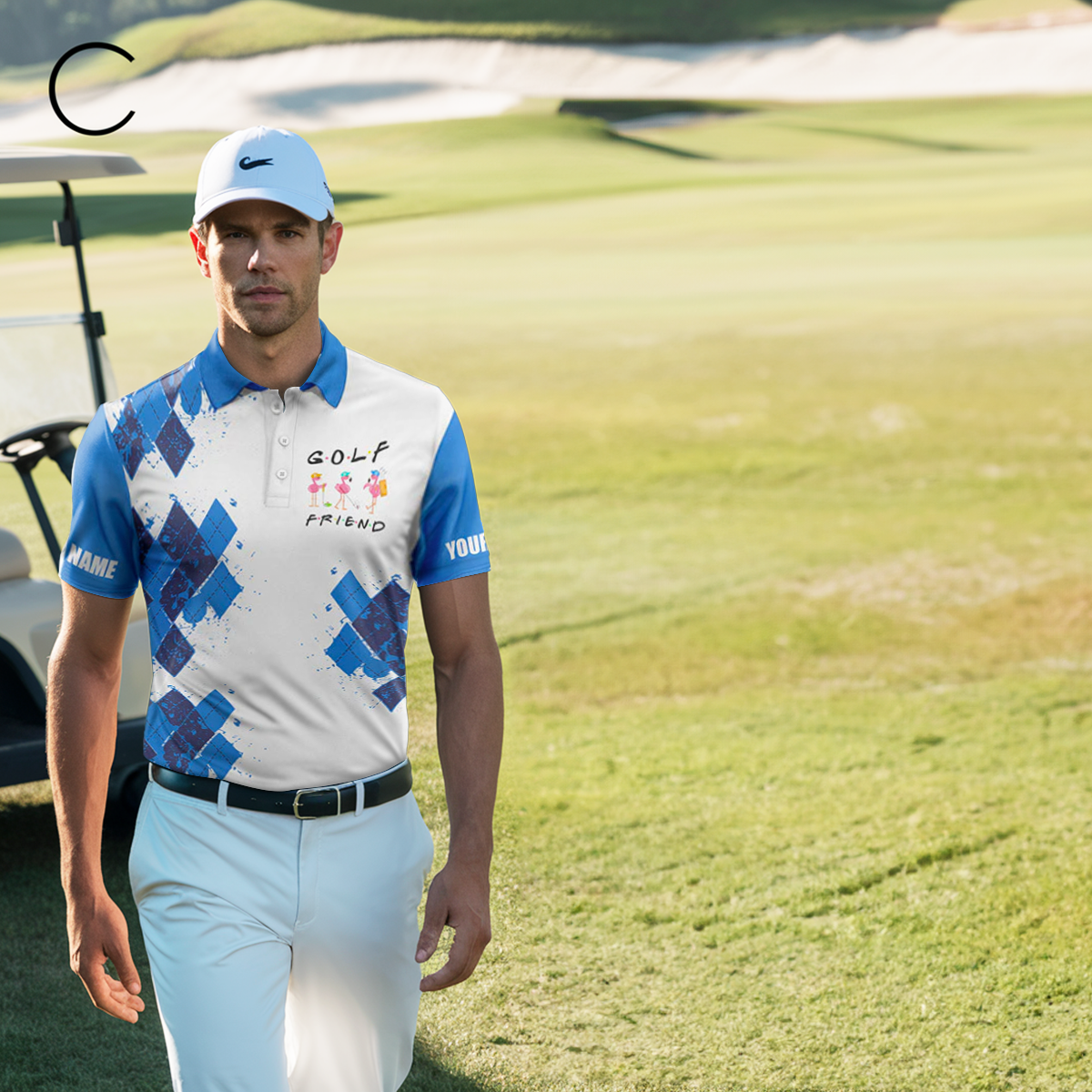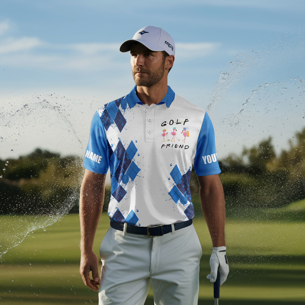 Personalisierte Herren Golf-Polo mit Flamingo-Motiv – Blau N3612