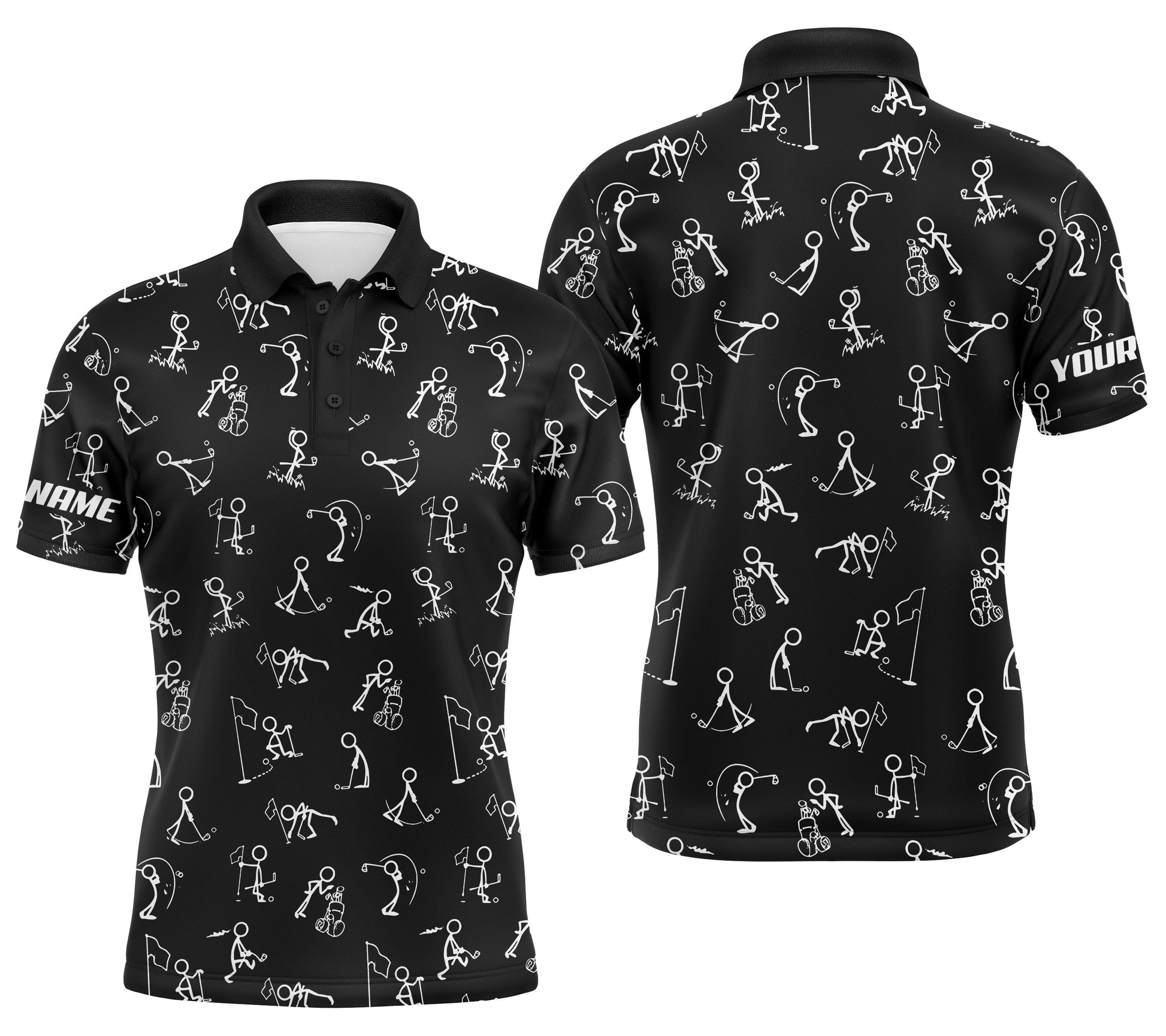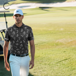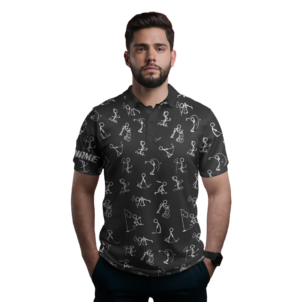 Personalisierte Herren Golf Poloshirt mit UPF-Schutz und witzigem Golf-Muster in Schwarz N4128
