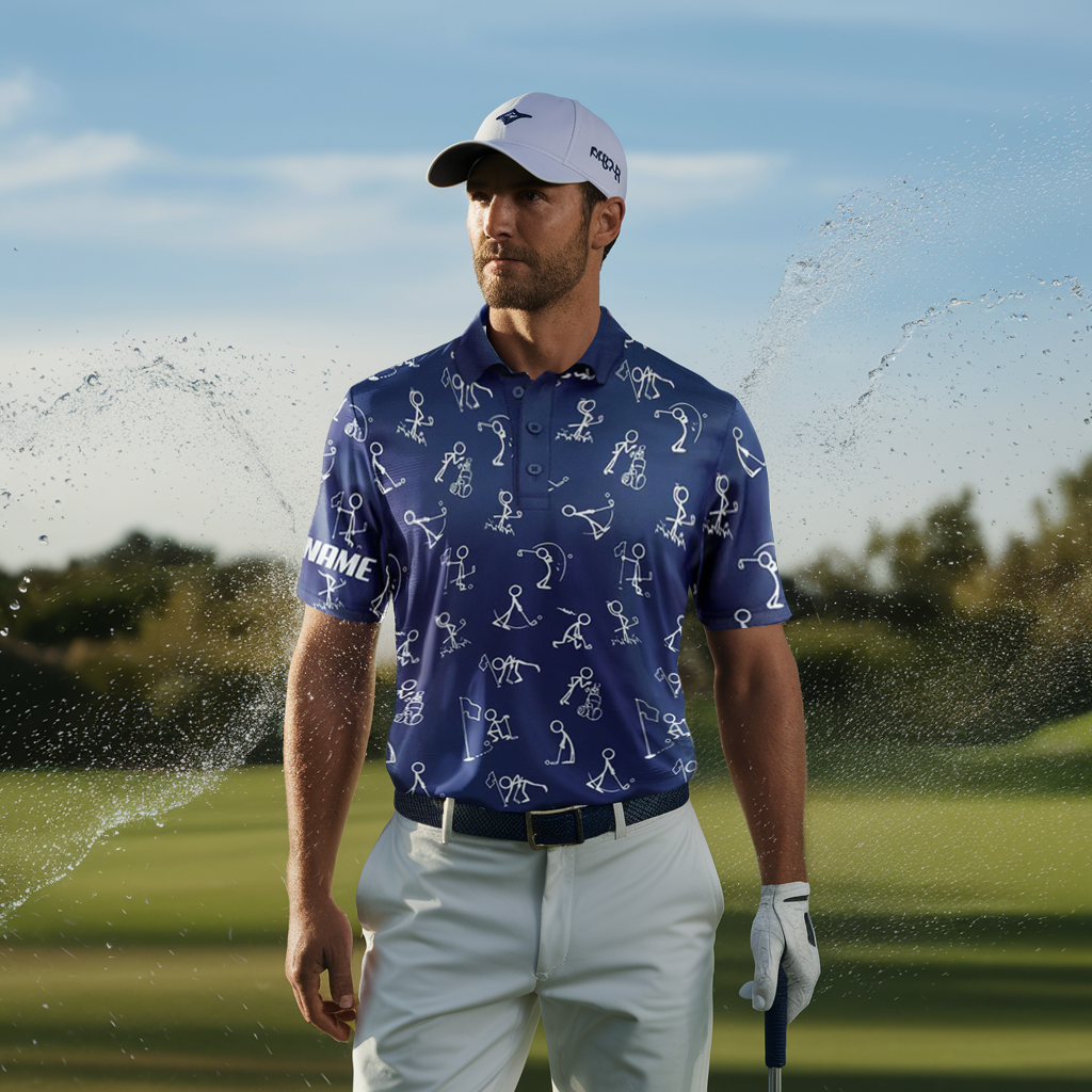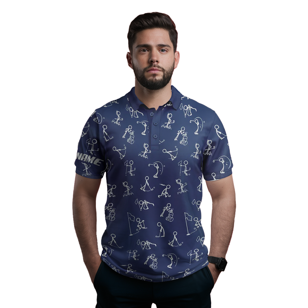 Personalisierte Lustige Golfmuster Herren-Polo mit UV-Schutz in Marineblau - Die beste Golfbekleidung für Männer N4844