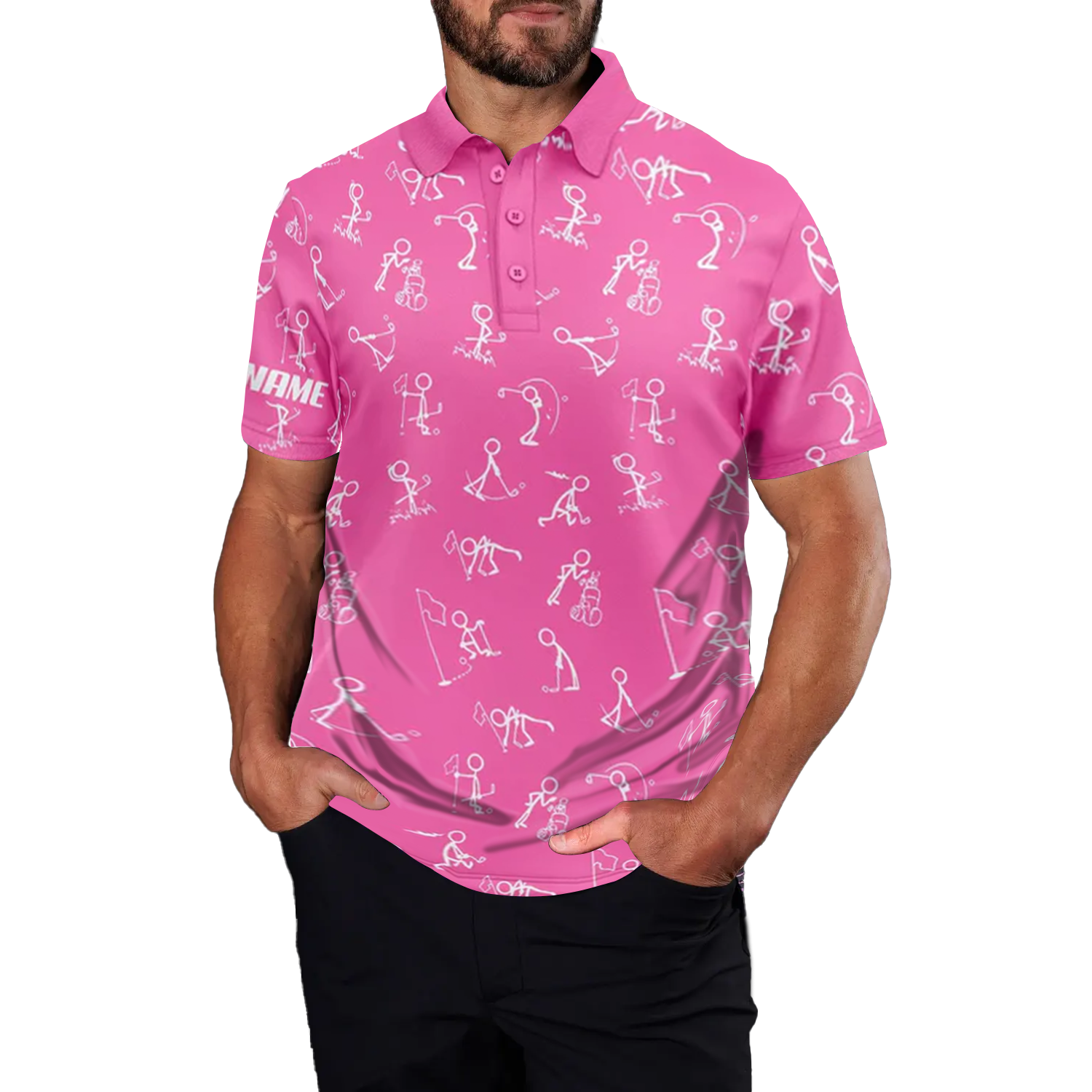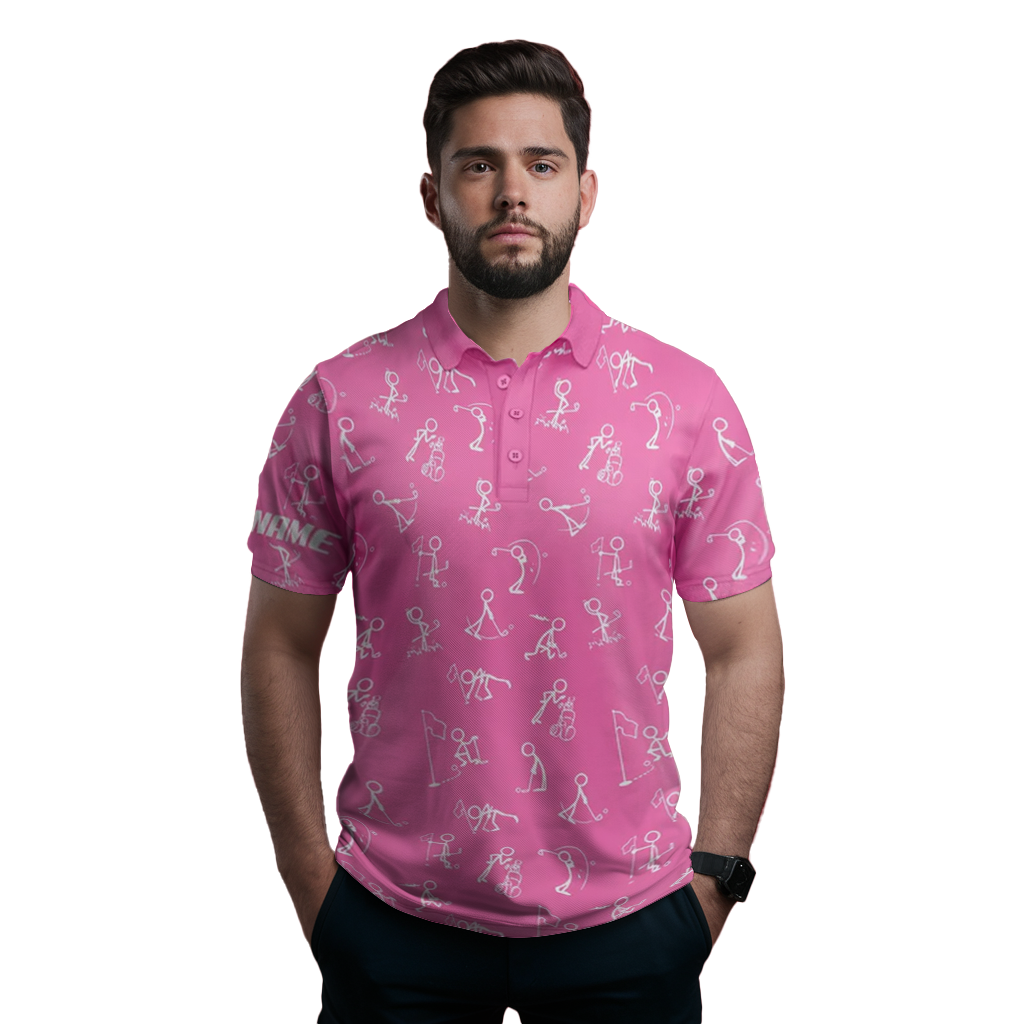 Personalisierte Herren Golf Polo-Shirts mit UV-Schutz in Pink – Lustiges Golf-Muster für stilvolle Golfer N4846