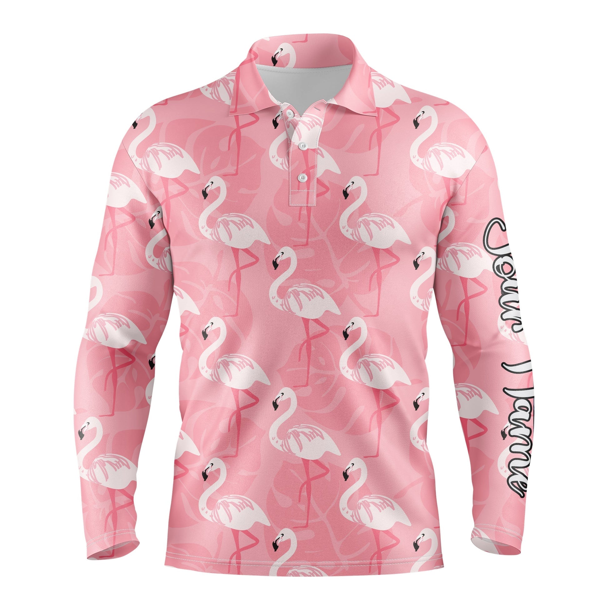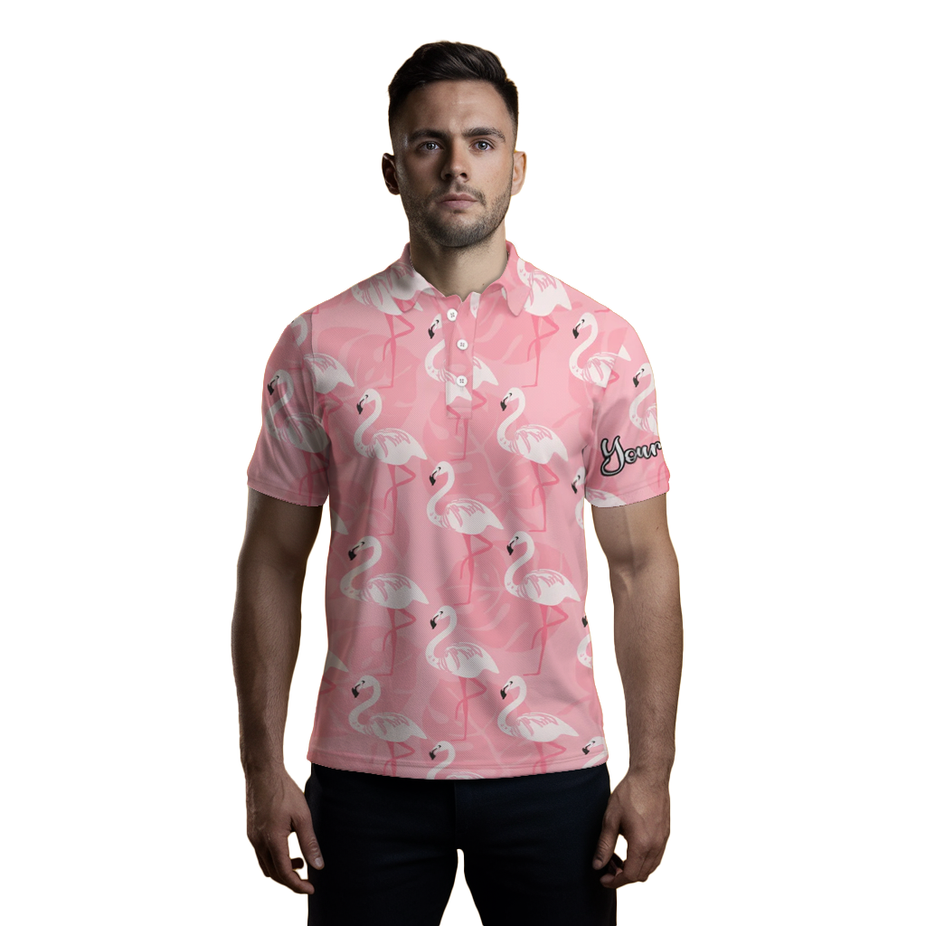 Personalisierbares Herren Golf Polo Shirt mit pinkem Flamingo-Muster und UV-Schutz – Perfektes Geschenk N3695