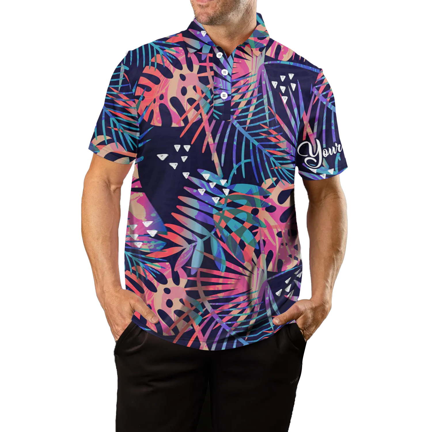 Herren Golf-Polohemden mit UV-Schutz – Lebendiger Tropenpflanzen- und Palmblätter-Druck für Ihr Team N3713