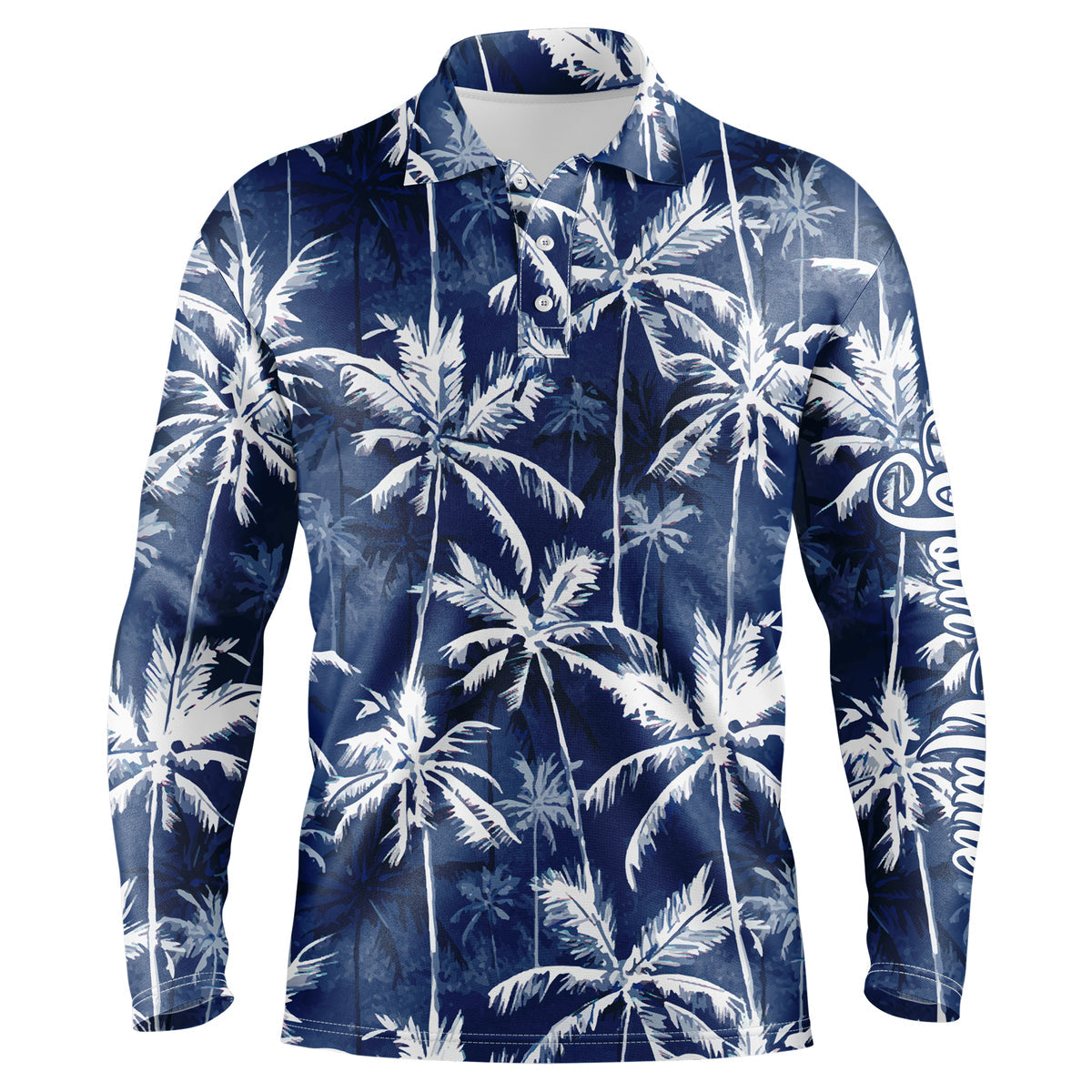 Herren Golf Poloshirt mit UV-Schutz - Tropisches Blau mit Palmen-Motiv N3711