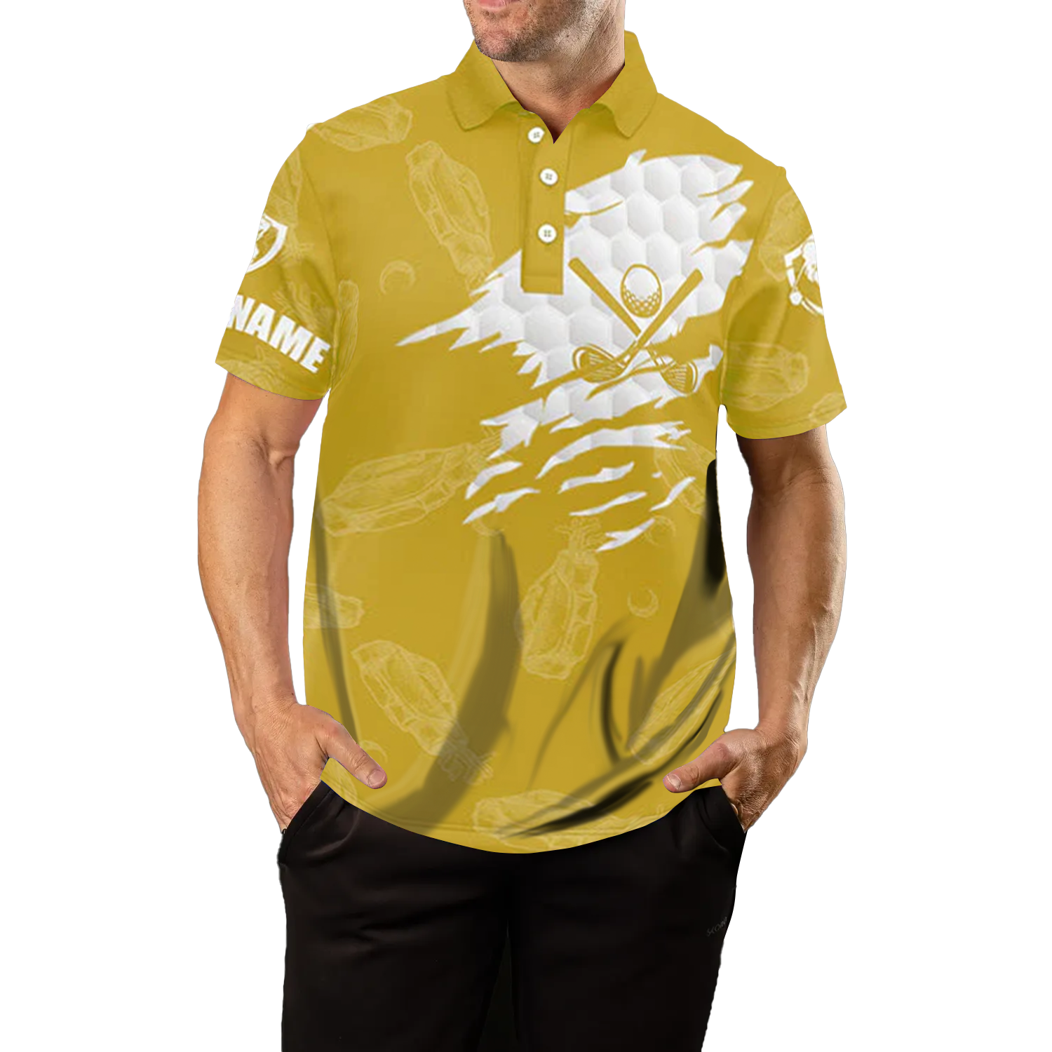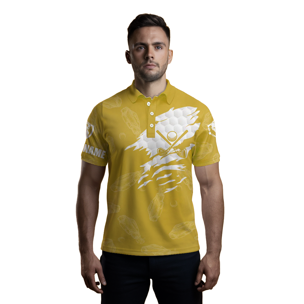 Personalisierte Golf-Polo-Shirts für Herren mit individuellem Namen | Gelbes Shirt im Golf-Club-Muster N7536