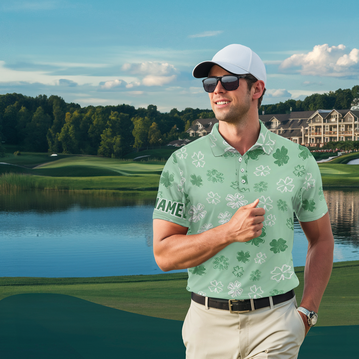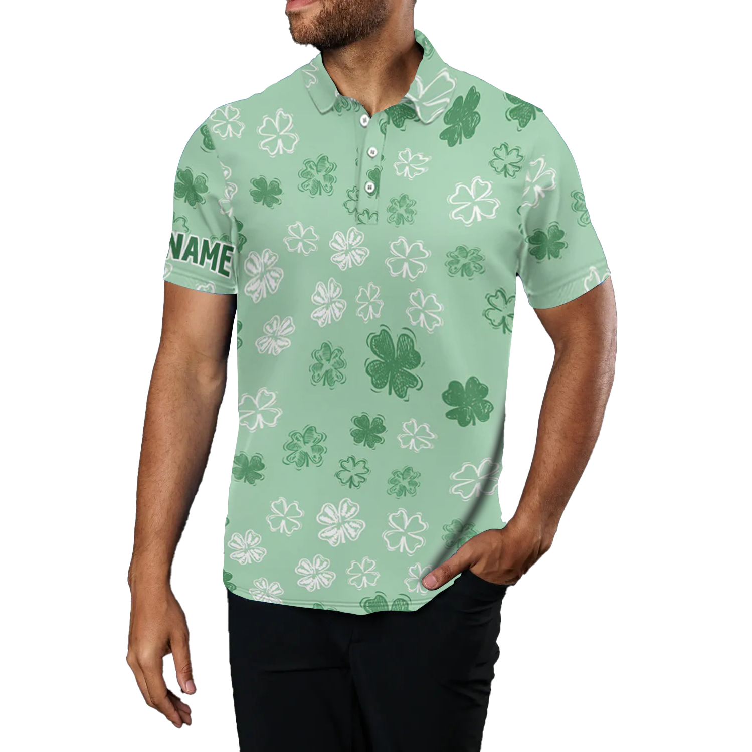 Herren Golf Polo-Shirt in Grün mit Kleeblatt – Individuelles Geschenk zum St. Patrick's Day L1256
