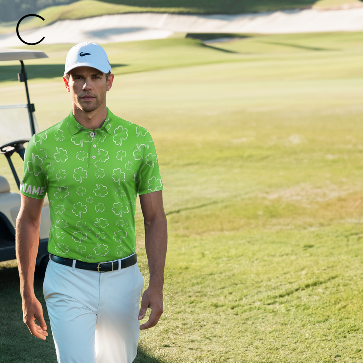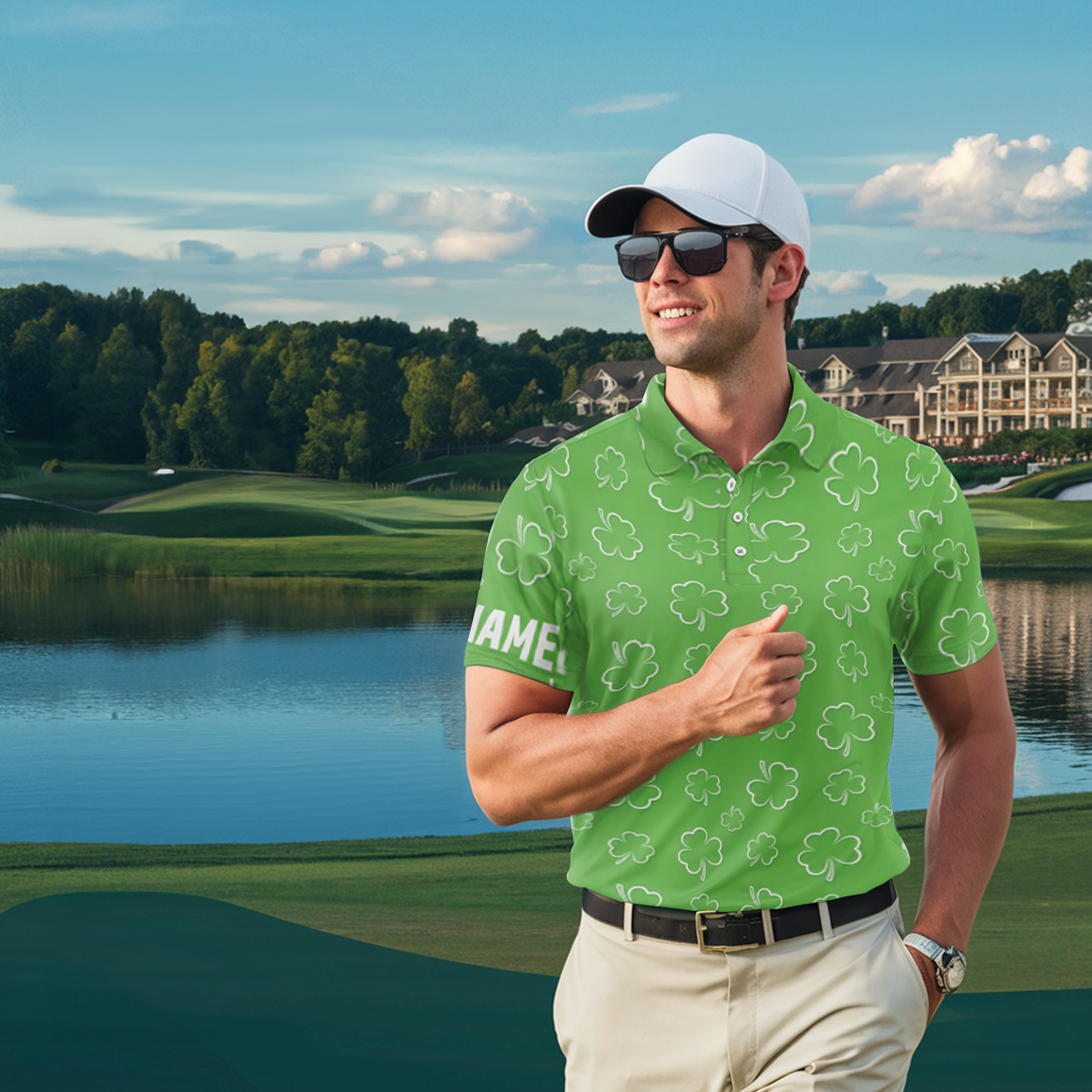 Herren Polo-Shirt in Grün mit Kleeblatt – Perfektes Golf-Shirt für den St. Patrick's Day – Ideales Geschenk für Golfer L1257