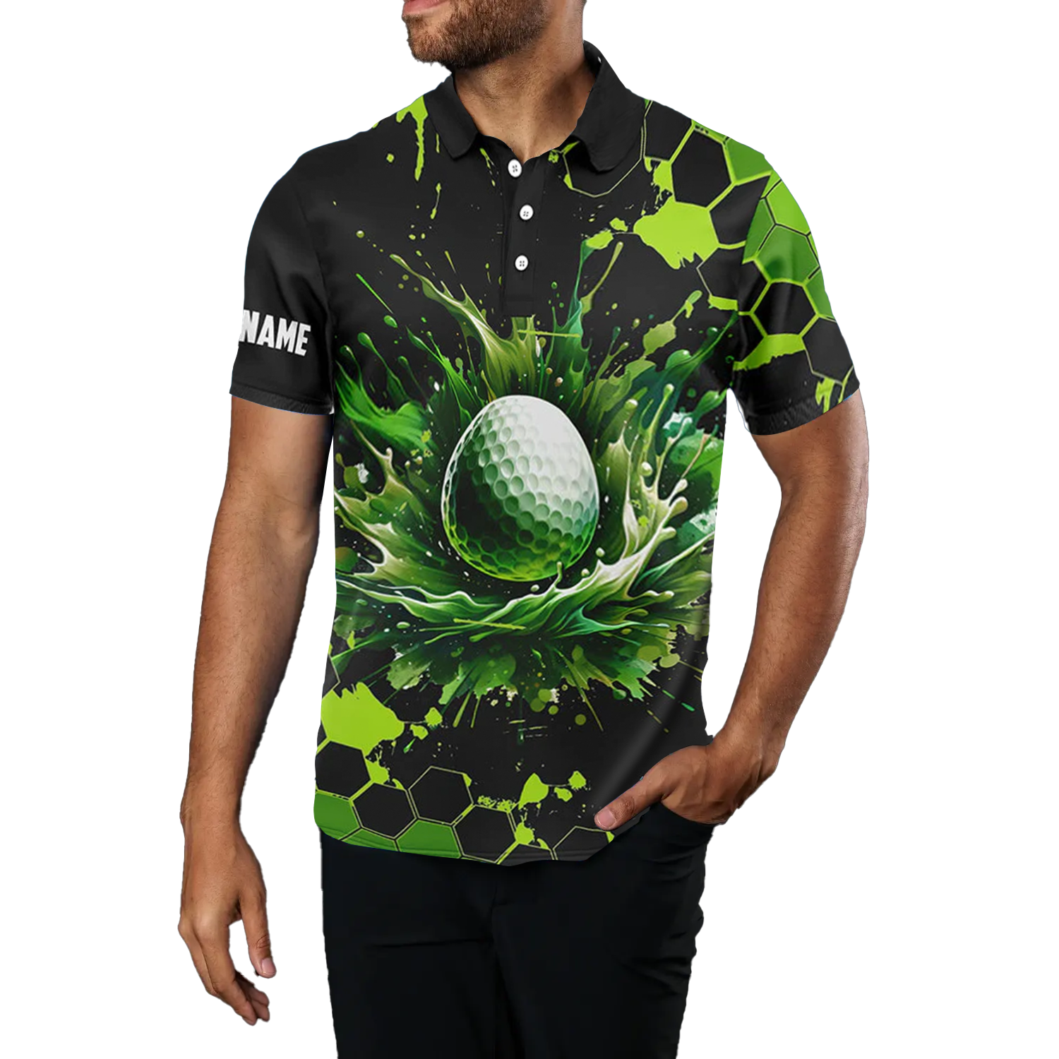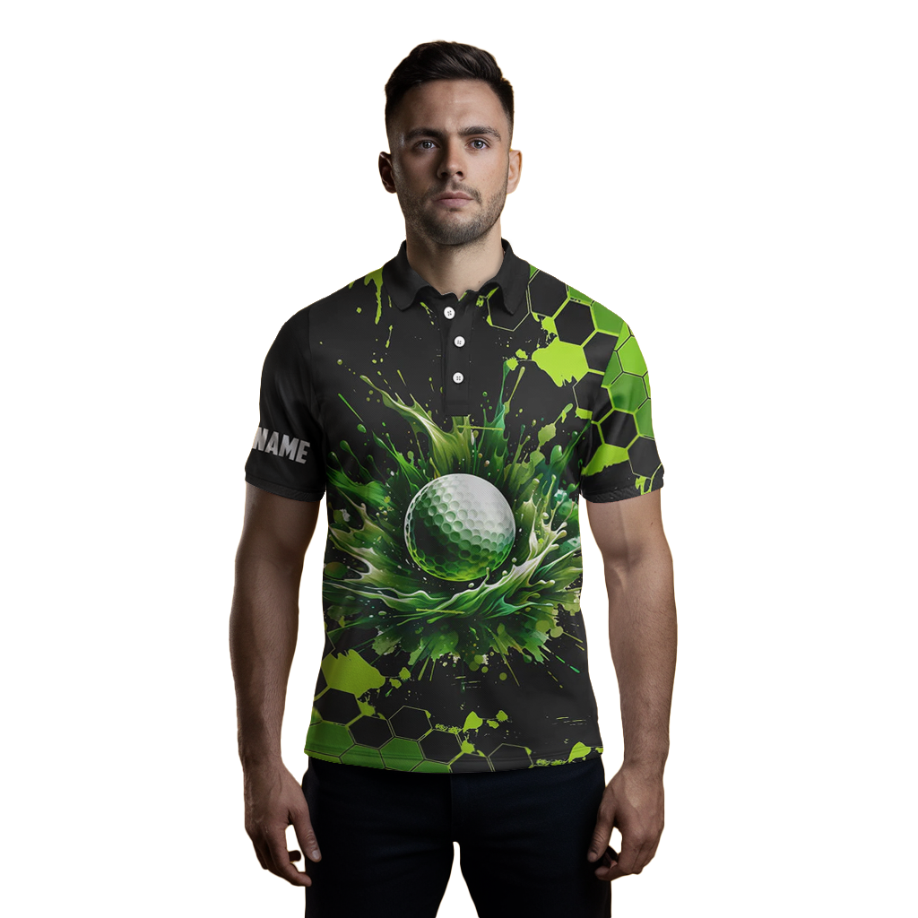 Individuelle schwarze und grüne Aquarell-Golfpoloshirts für Herren - Perfektes Geschenk für Golfbegeisterte N7292