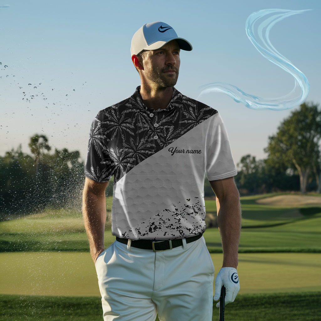 Herren Polo-Shirt mit individuellem schwarzen Palmen-Design – Hochwertige Golfbekleidung N7116