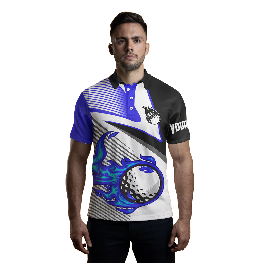 Individuelles Herren Golf Polo-Shirt mit Flammenmotiv – Einzigartiges Golfgeschenk in Blau N7520