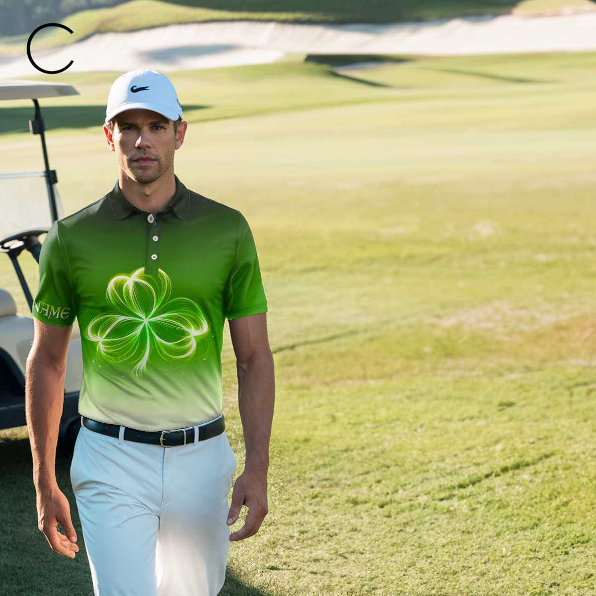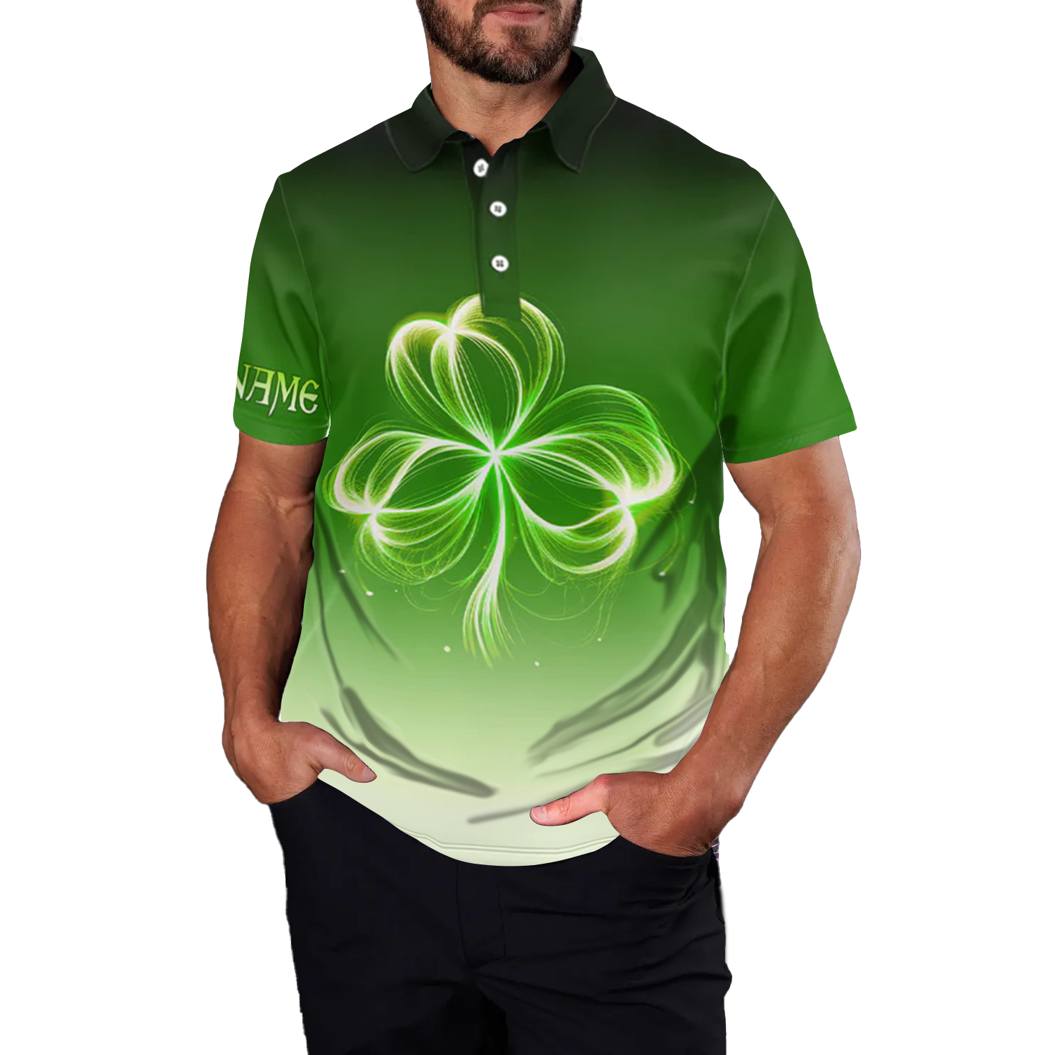 Maßgeschneiderte Herren Golf-Polo-Shirt in Gradient Grün - Leichtes Kleeblatt-Design für den St. Patrick's Day N7198
