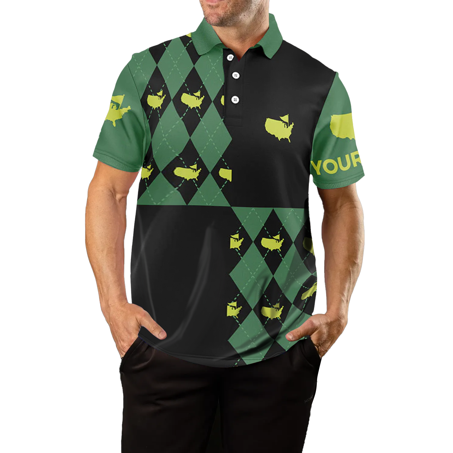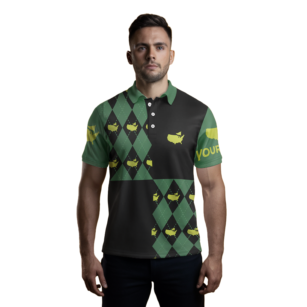 Herren Golf Polo Shirts mit grün-schwarzem Argyle-Muster – Individuelles Design für den coolsten Auftritt auf dem Platz N7202