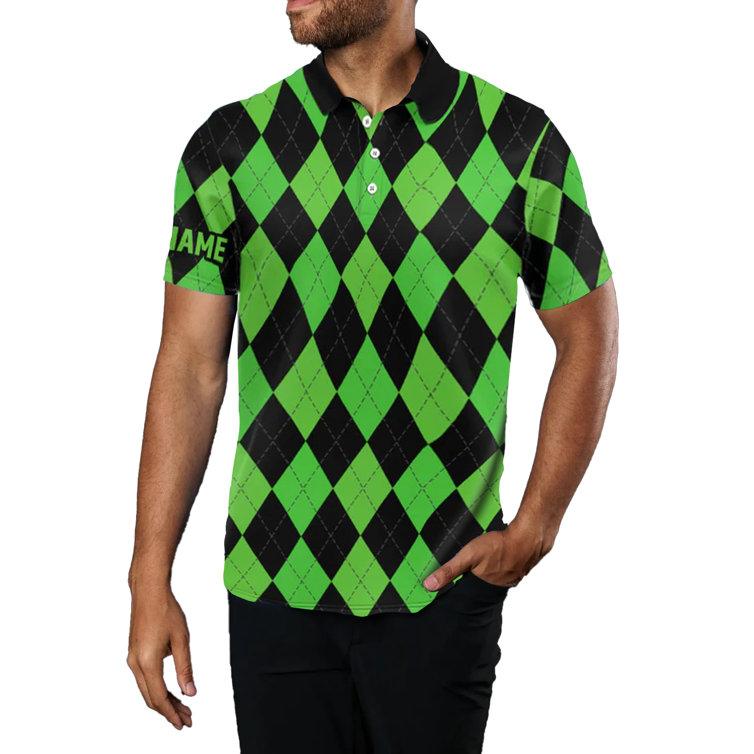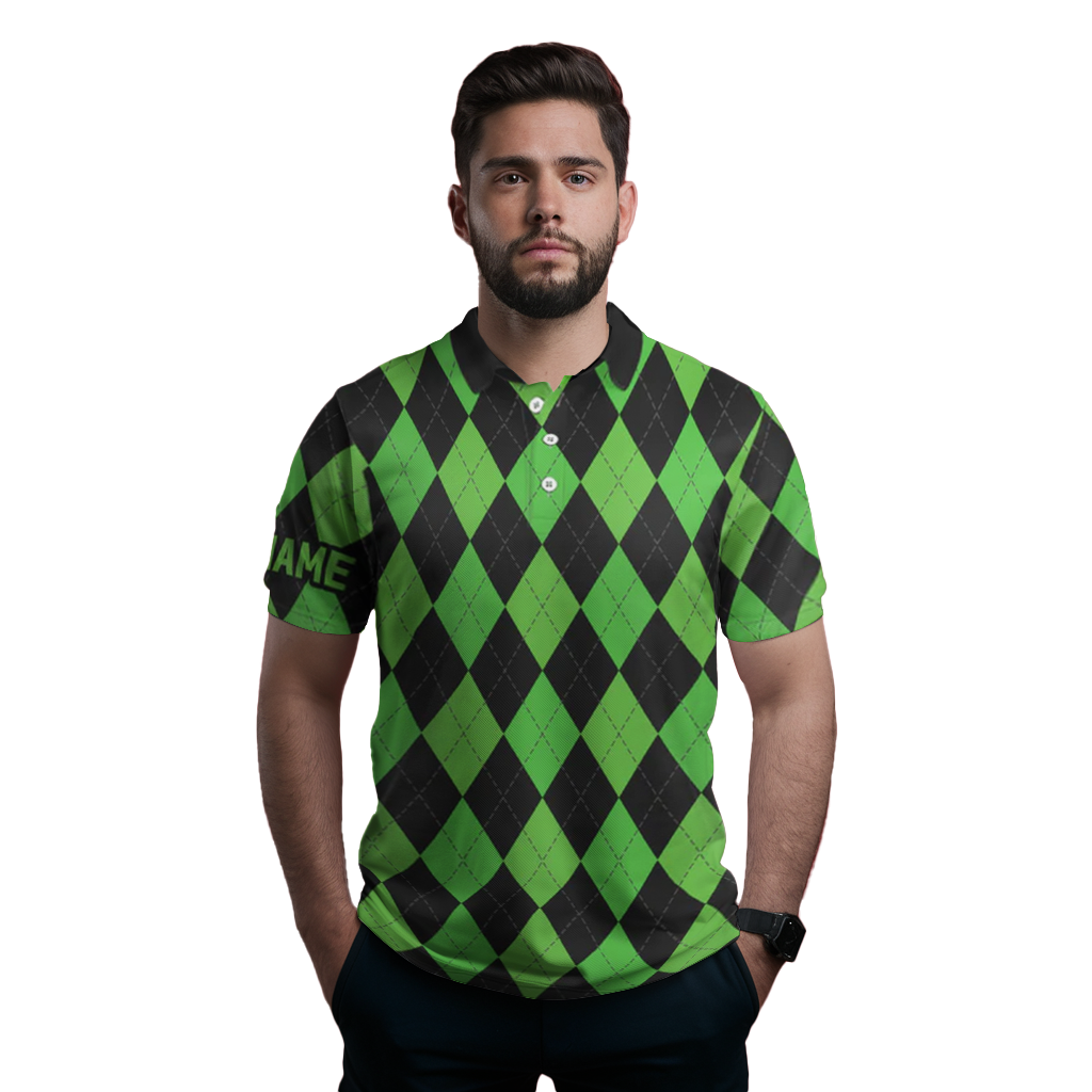 Herren Polo-Shirt mit individuellem grün-schwarzem Argyle-Muster - Stylische Golfbekleidung für Männer N7184