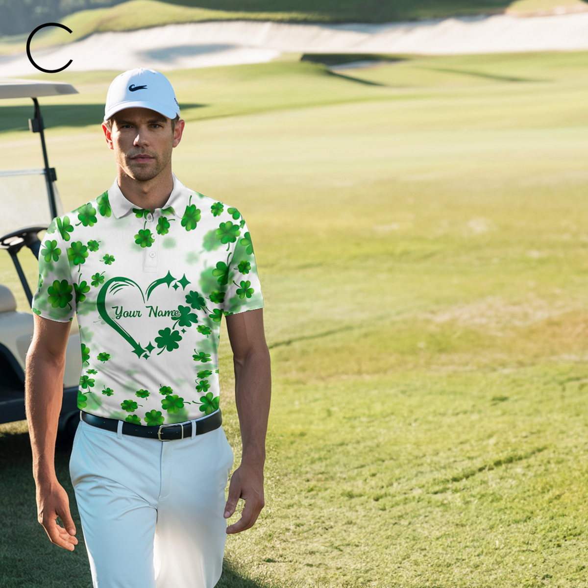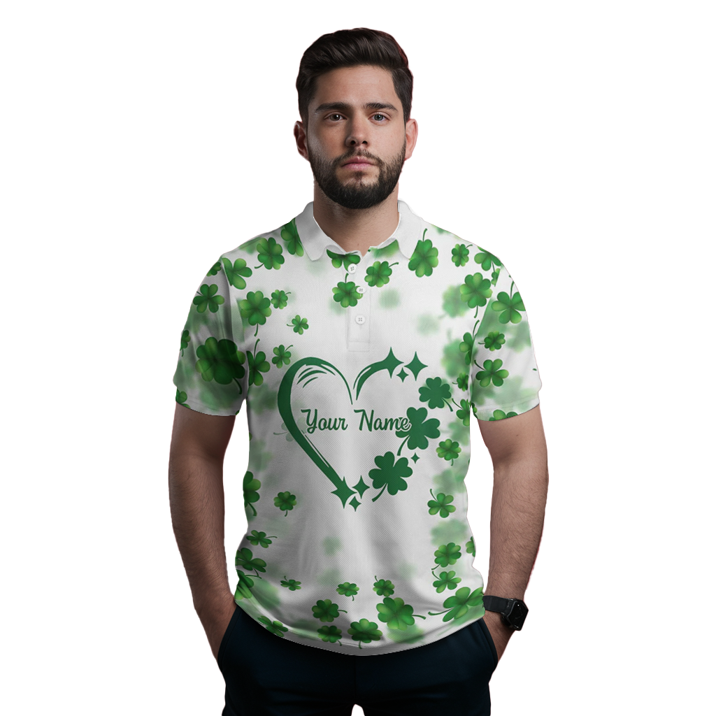 Personalisierte Herren Poloshirt mit grünem Kleeblatt-Motiv für St. Patrick's Day N7197