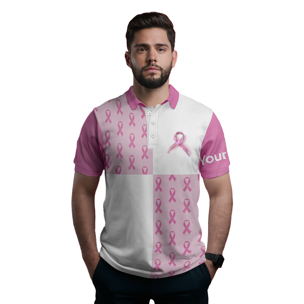Personalisierte Pinke Golf-Polo-Shirt mit Brustkrebs-Rosa-Schleifen-Muster - Perfektes Geschenk für Golfer N7454