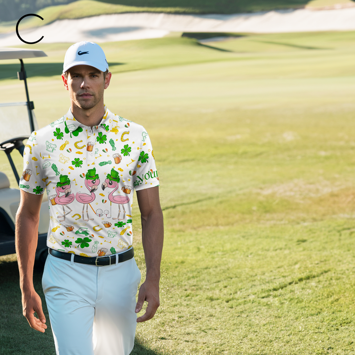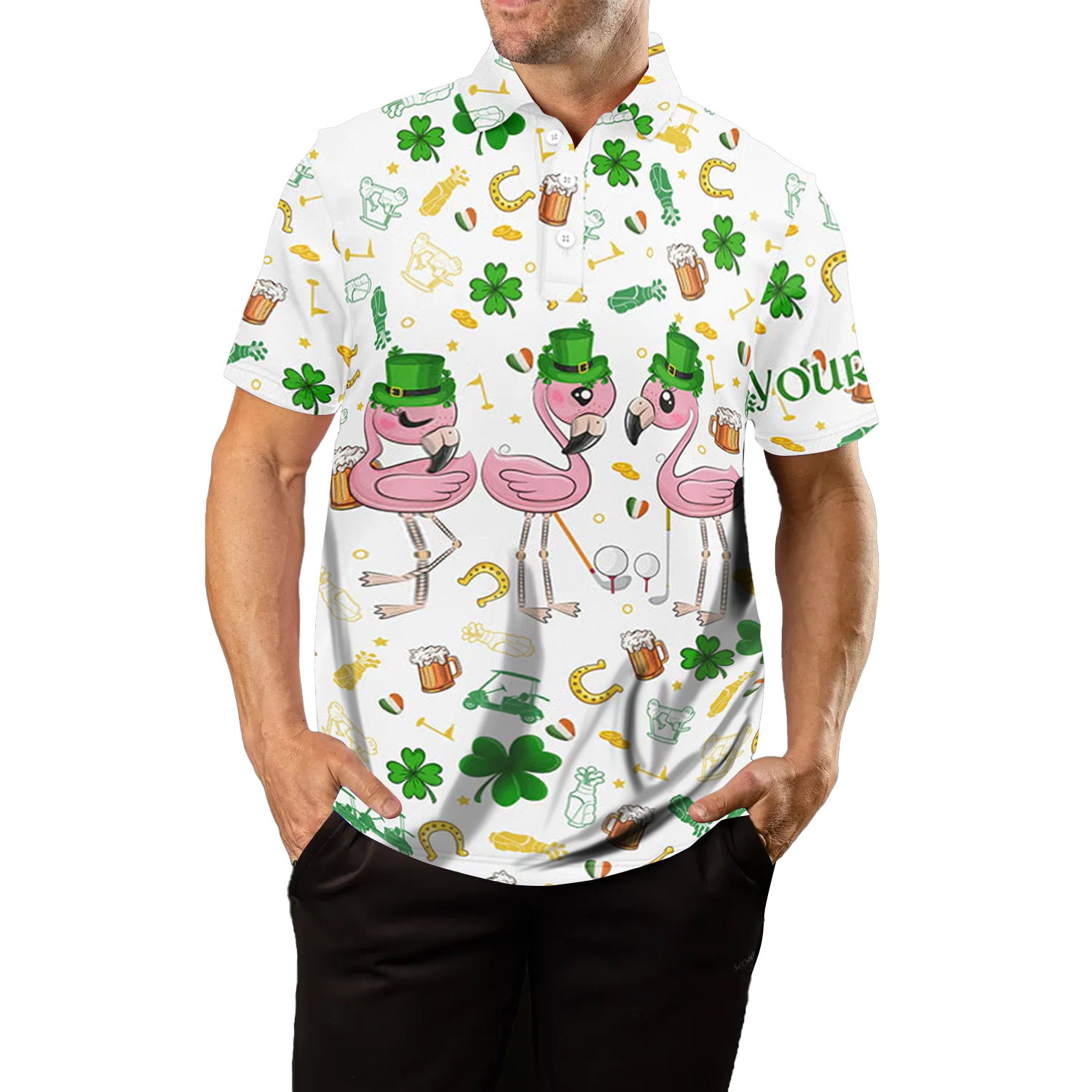 Personalisierte Herren Golf-Poloshirts für den St. Patrick's Day mit Flamingo-Muster N7201