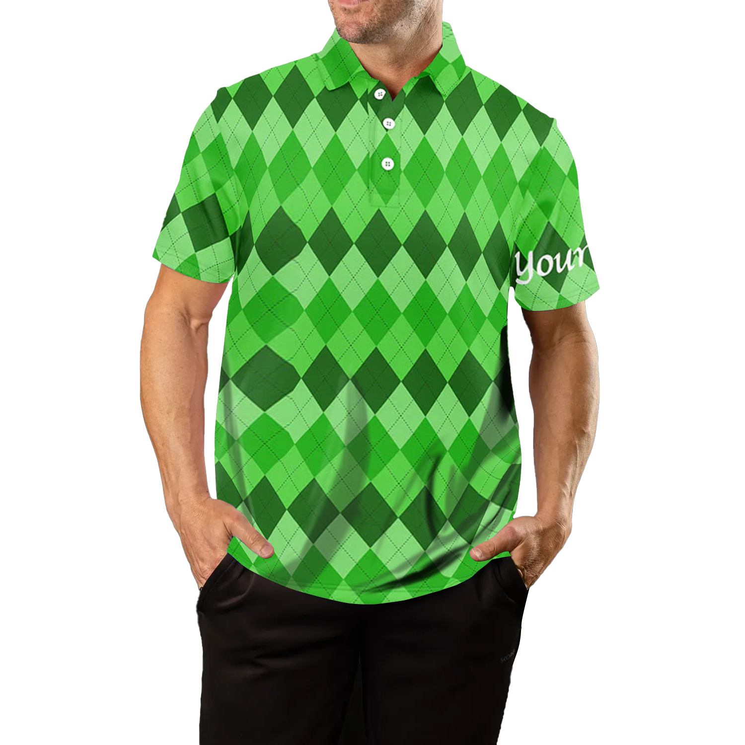 Grünes Herren-Golfpoloshirt mit Rautenmuster - Individuell gestaltbare Teambekleidung für den St. Patrick's Day N4725