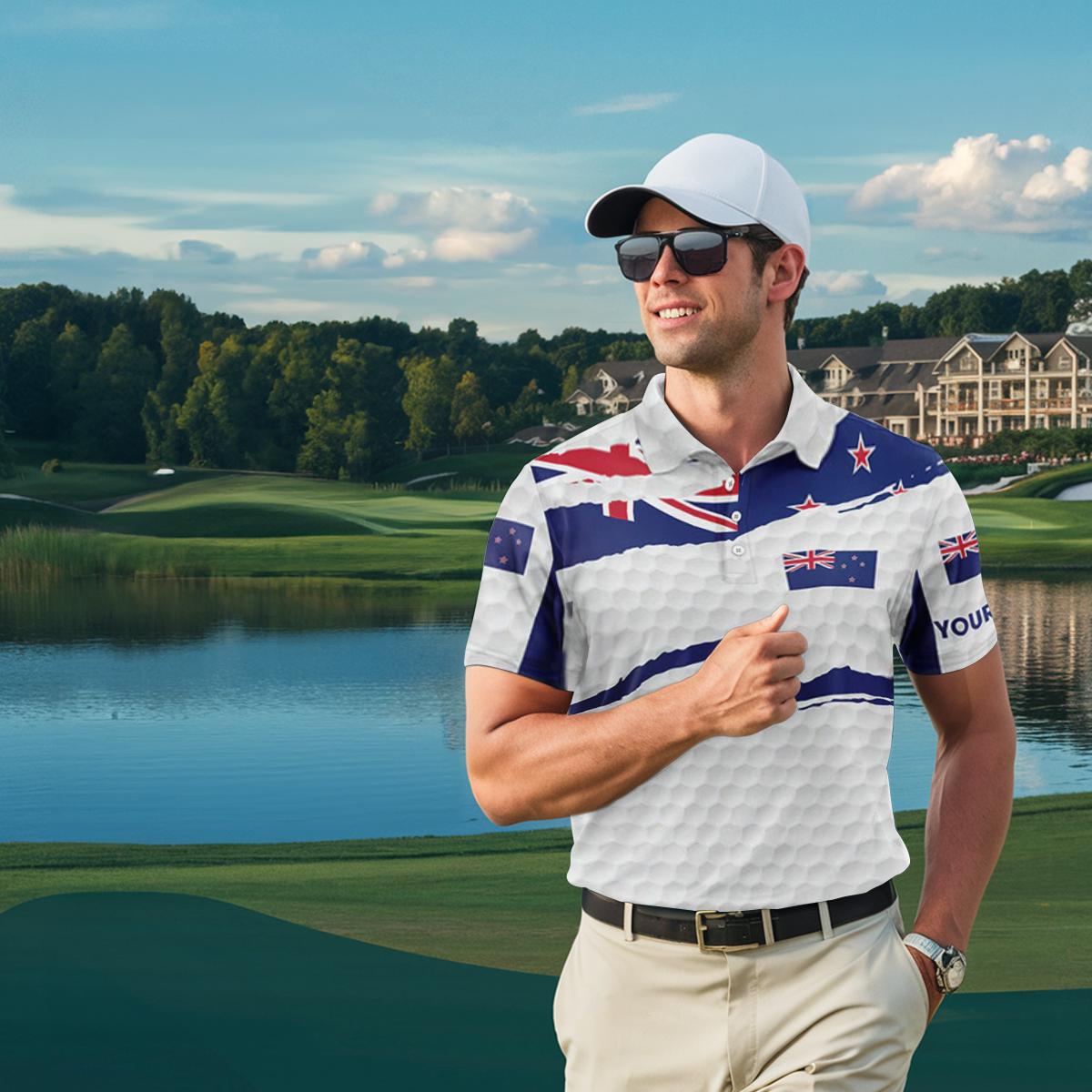 Herren Golf Polo Shirt mit Neuseeland-Flagge - Personalisierbar für Golf-Liebhaber N4365