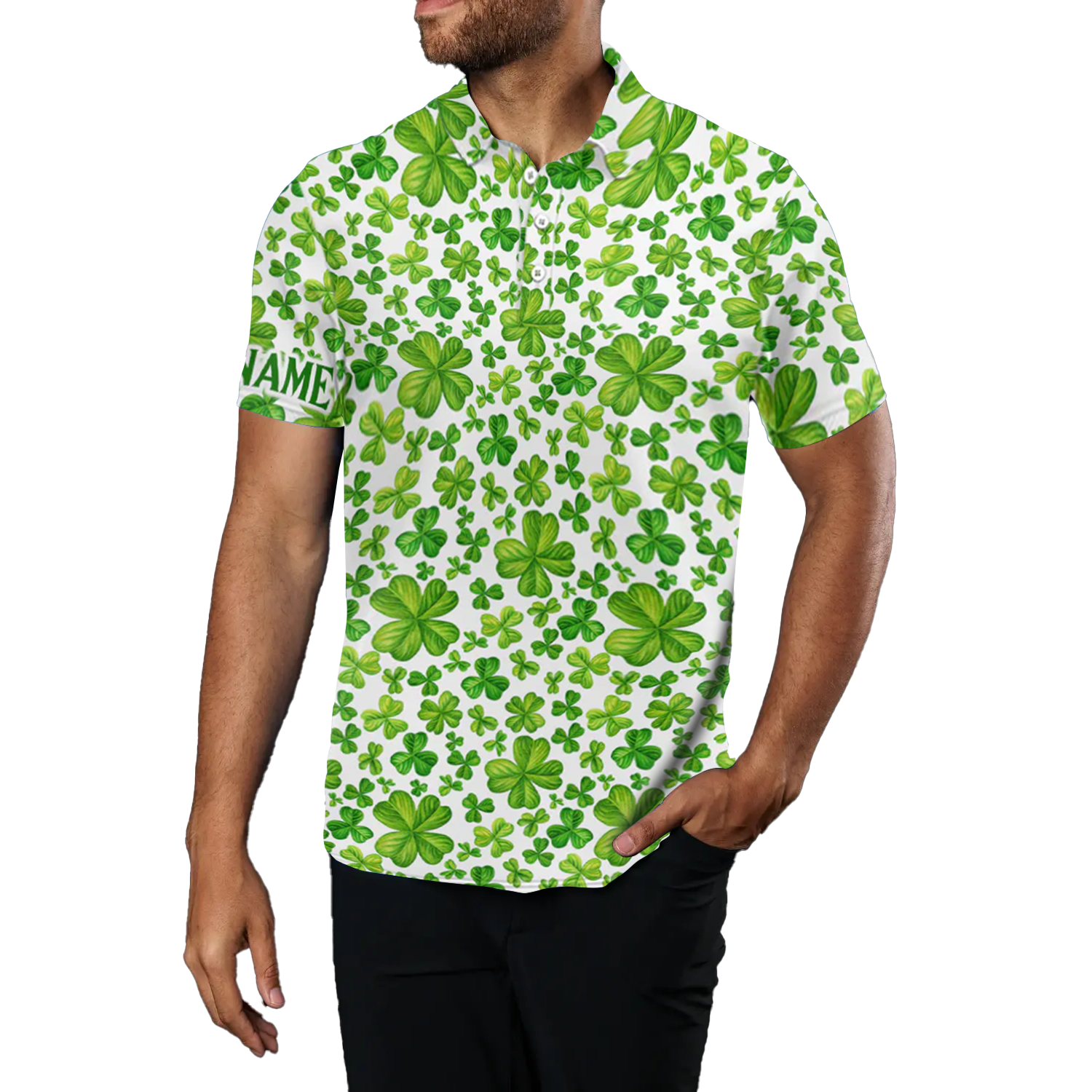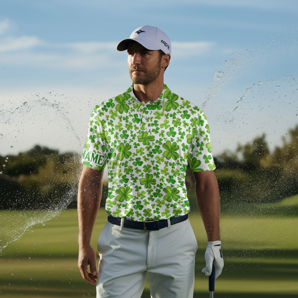 Herren Poloshirt mit Aquarell-Grünem Kleeblatt – St. Patrick's Day Golf Polo nach Maß N7181