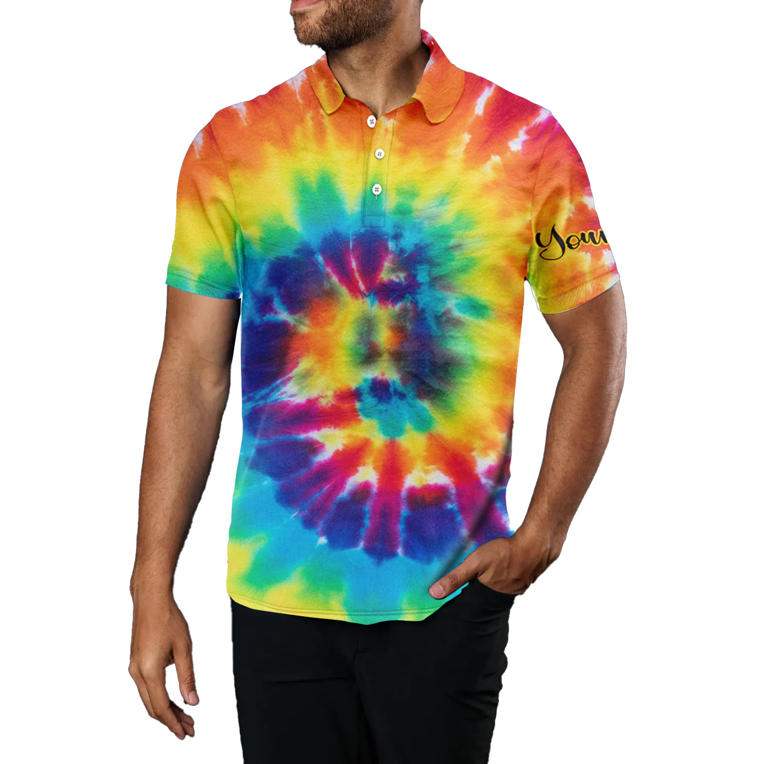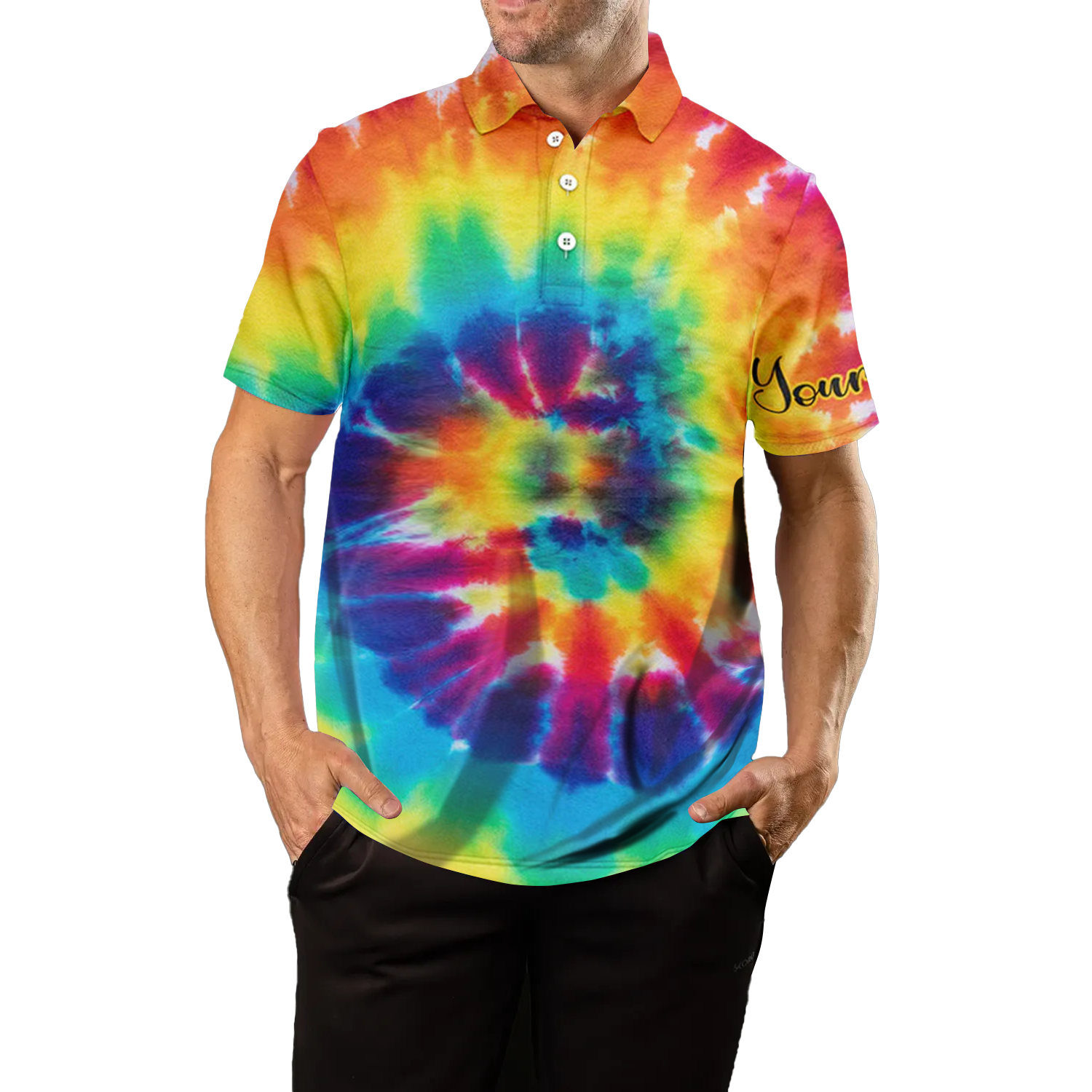 Personalisierbares Herren Golfshirt mit buntem Batikdesign - Das ideale Geschenk für Golfspieler N4074