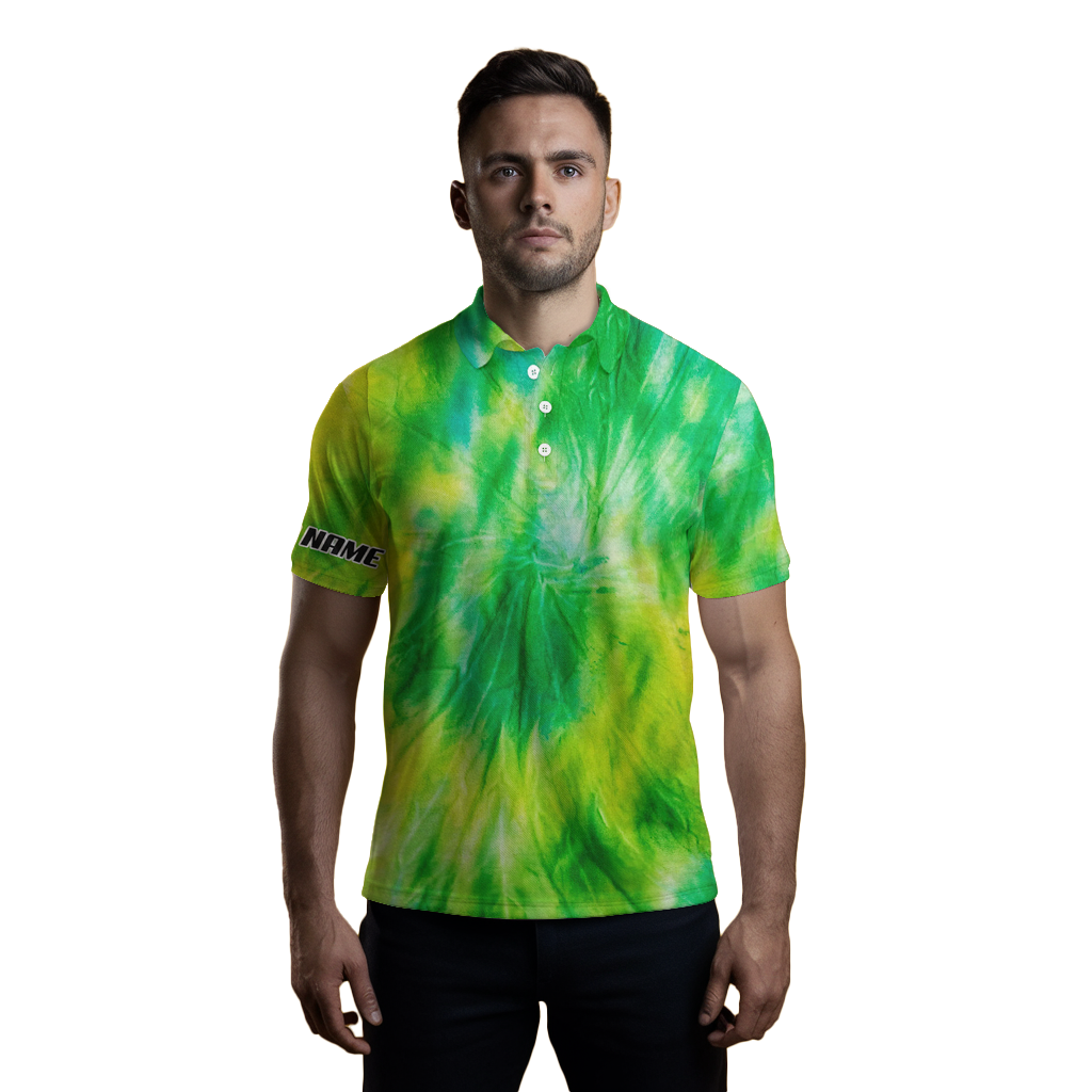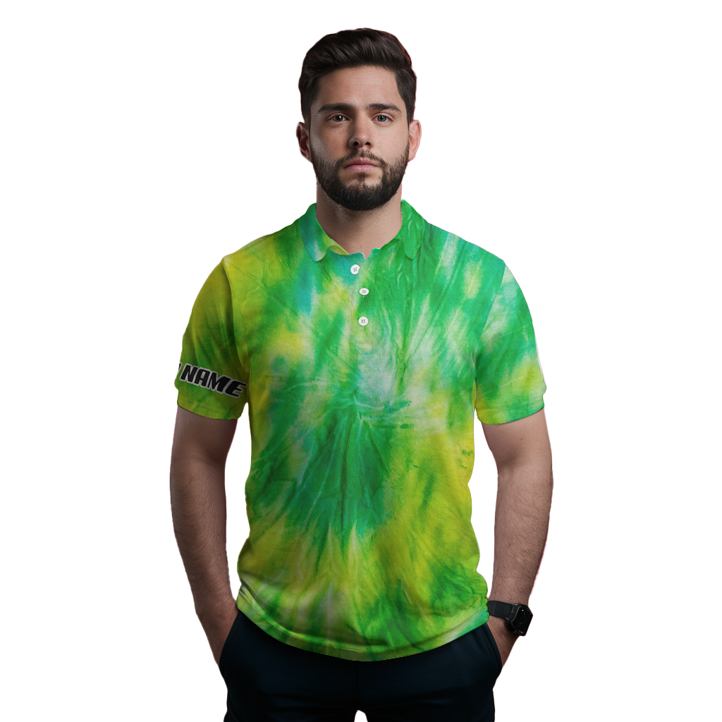 Herren Polo-Shirt mit individuellem Batikdesign in Gelb und Grün – Stilvolles Golfoberteil für Männer N5647