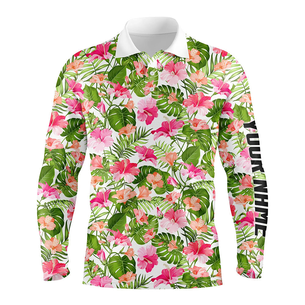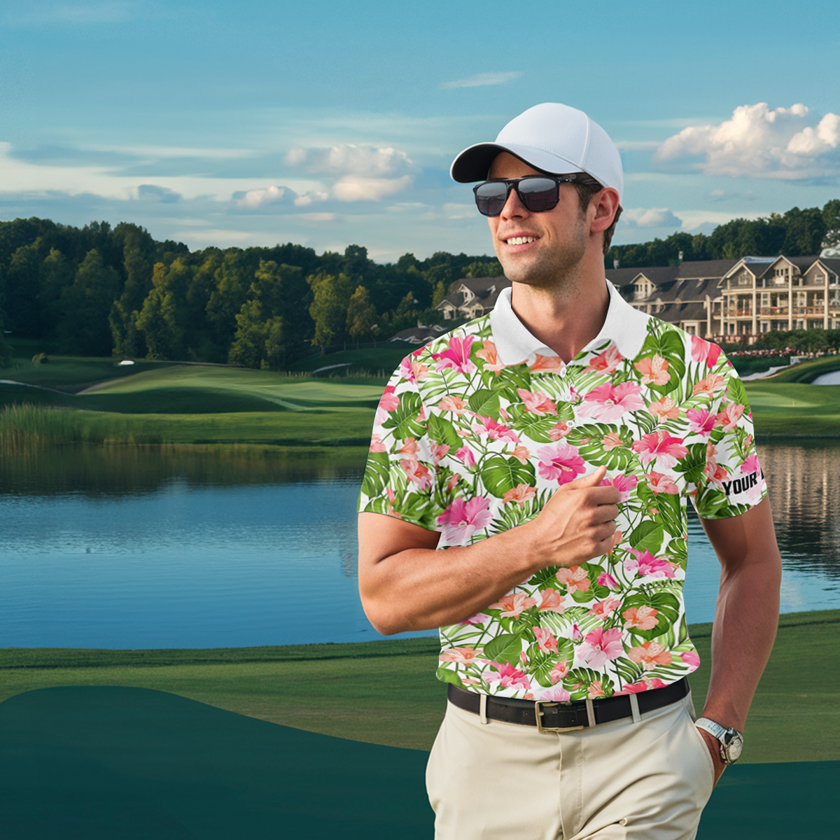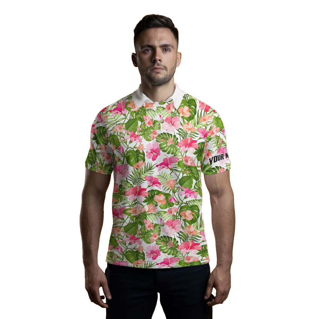 Herren Golf Polo-Shirts mit Individuellem Hibiskus- und Palmendruck N7129