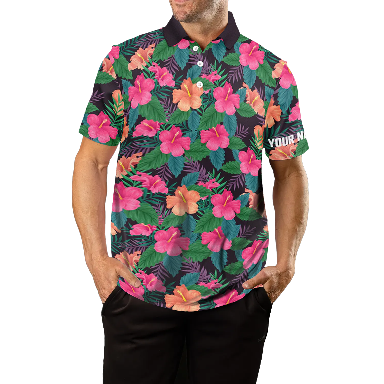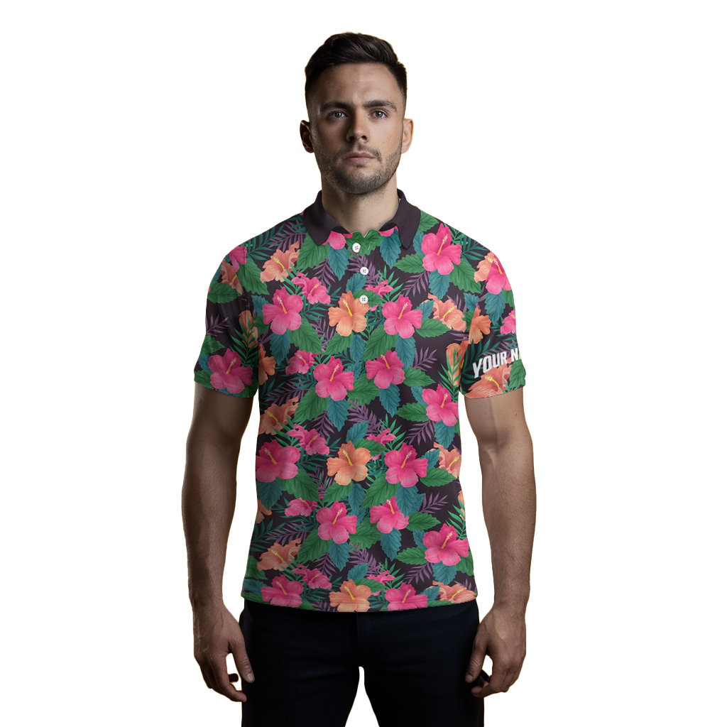 Herren Golf Polo-Shirts mit buntem Hibiskus-Muster – Tropische Golfoberteile für Männer N7133