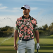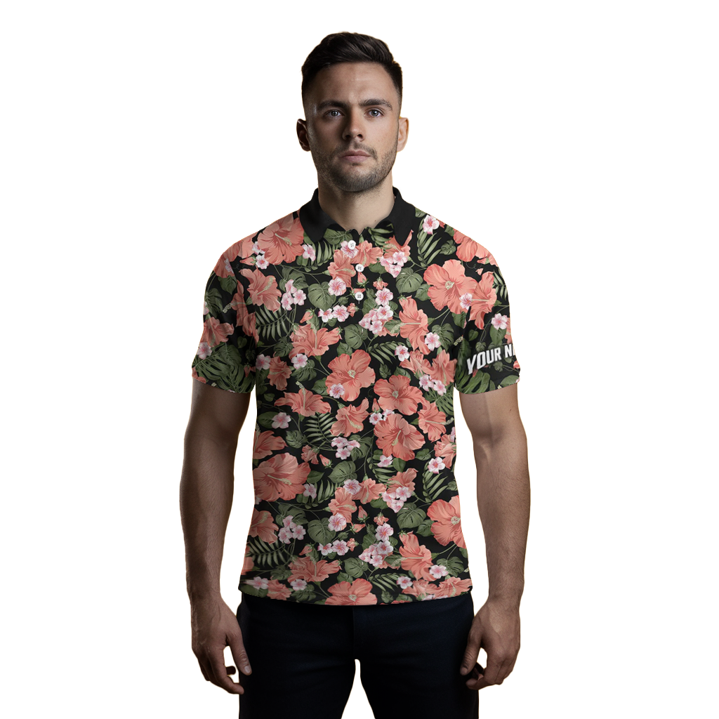Hochwertige Herren Golf-Polo-Shirts mit tropischem Hibiskus-Muster in Pink – Perfekt für stilvolle Golfer N7132