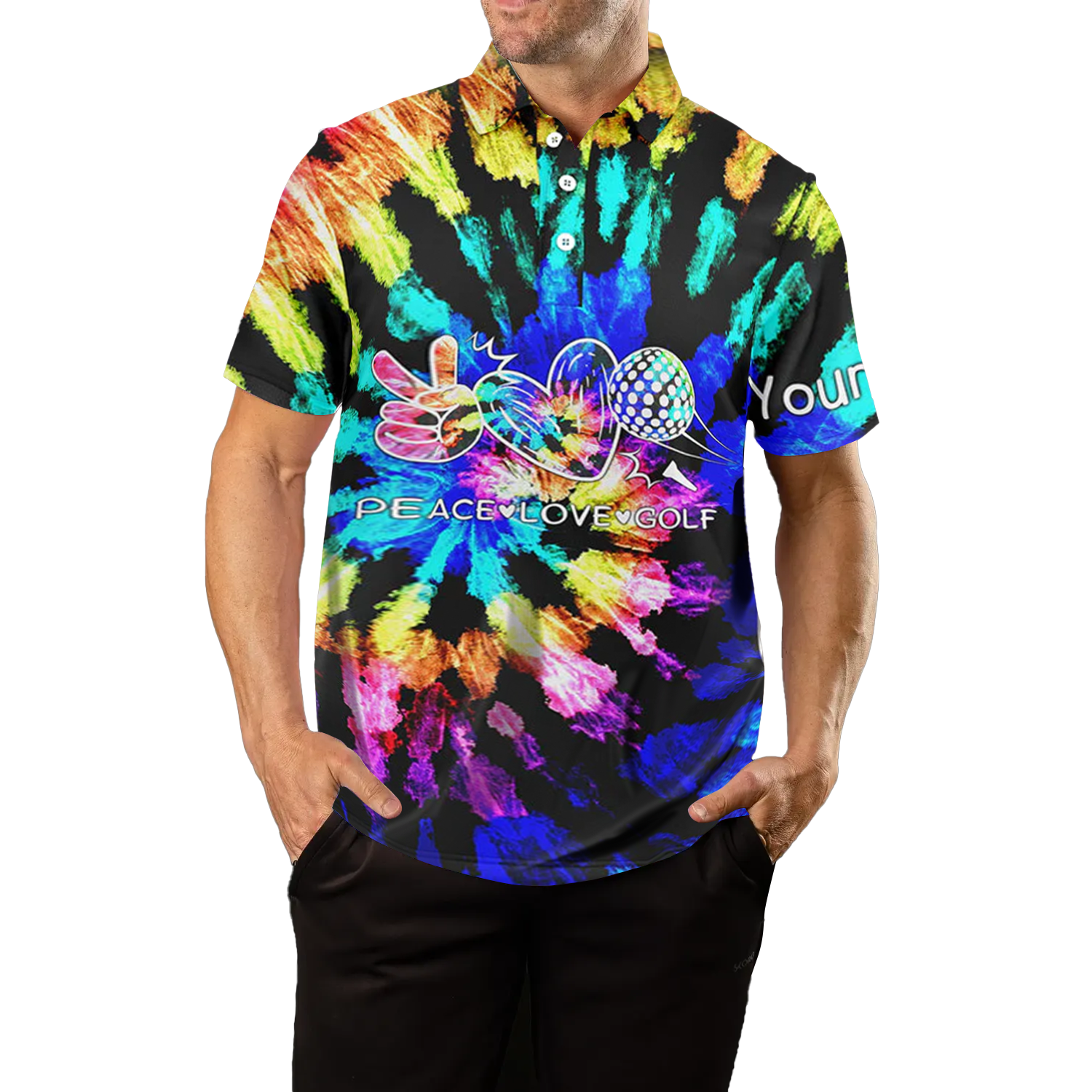 Personalisierte Herren Golf-Polo mit Batikdesign – Peace, Love & Golf N7037
