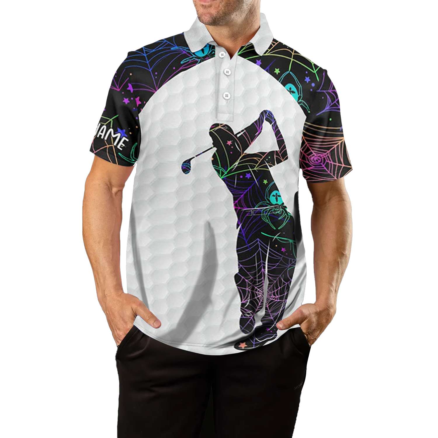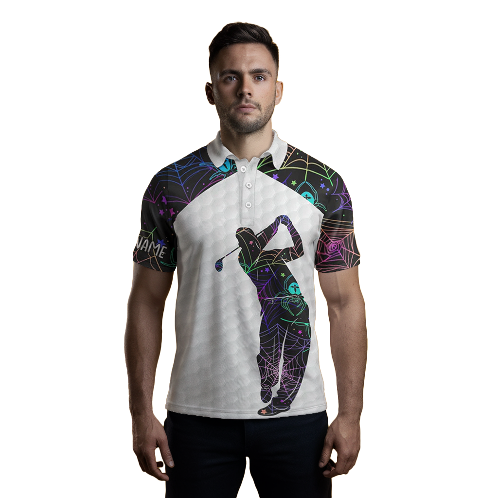 Herren Polo-Shirt mit buntem Spinnennetz-Motiv für Golf L0110