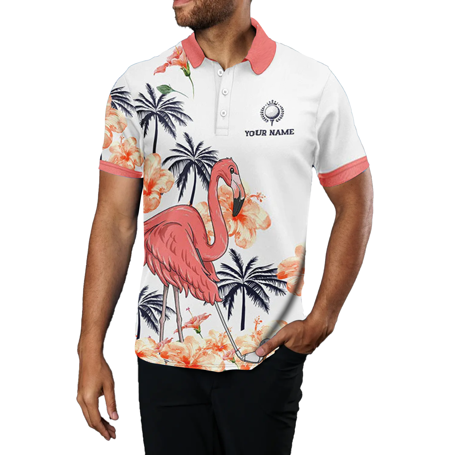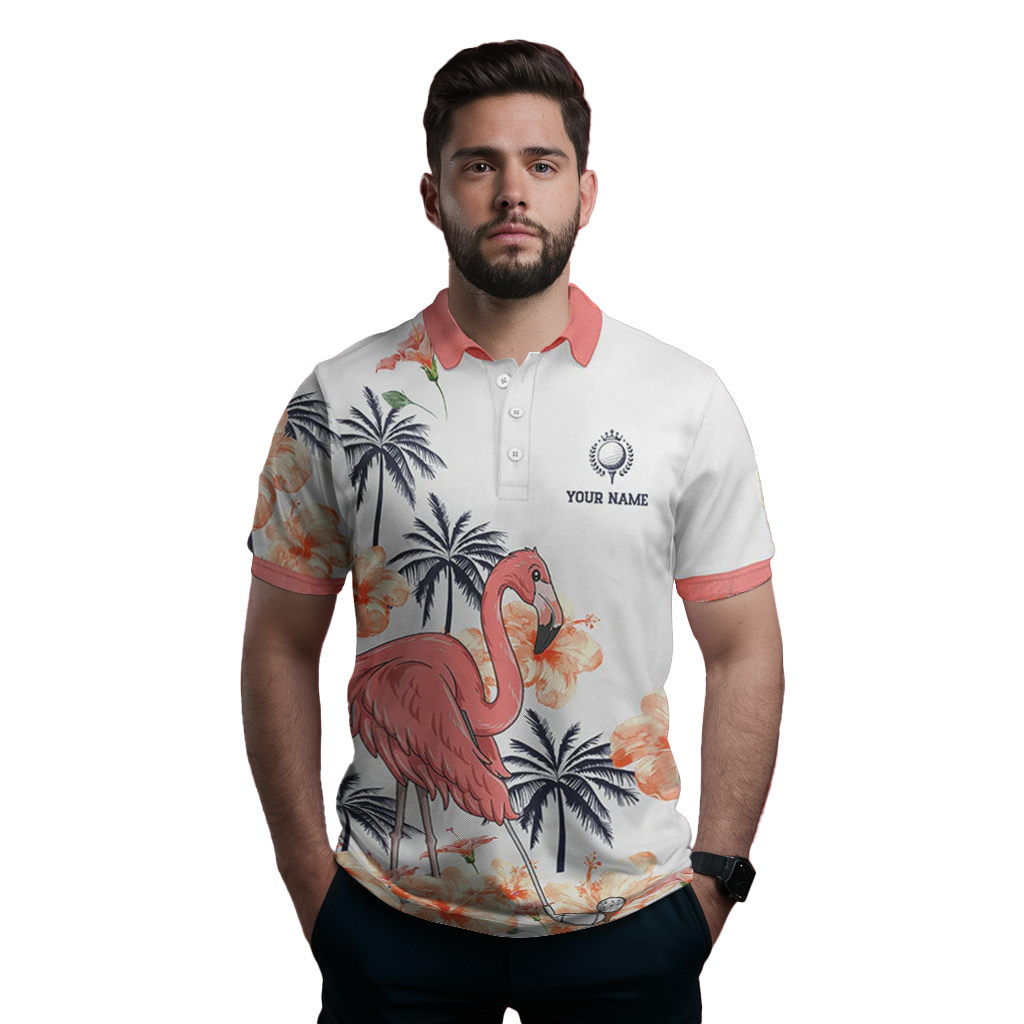 Herren Poloshirt mit pinken Flamingos – Tropisches Golfdesign L0098