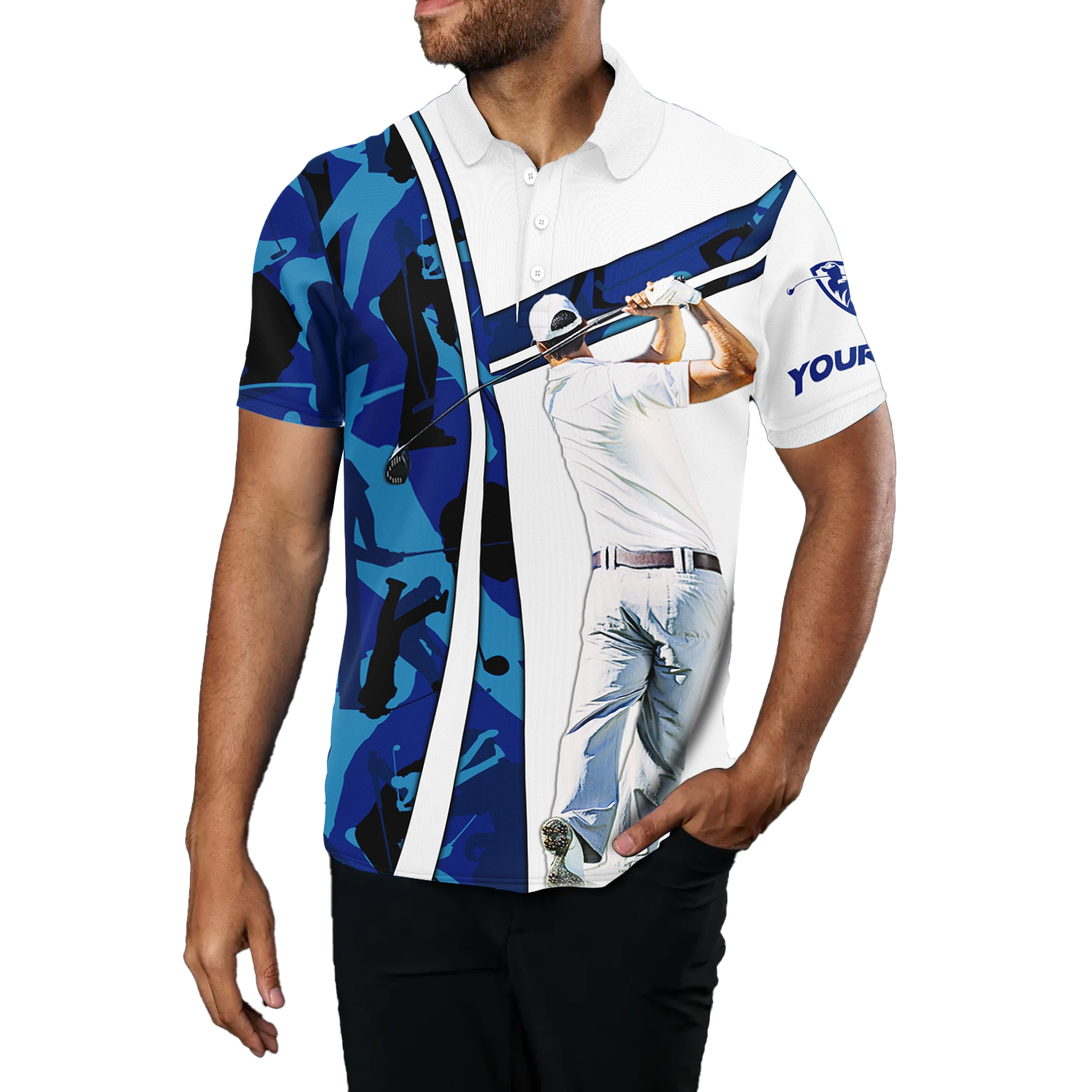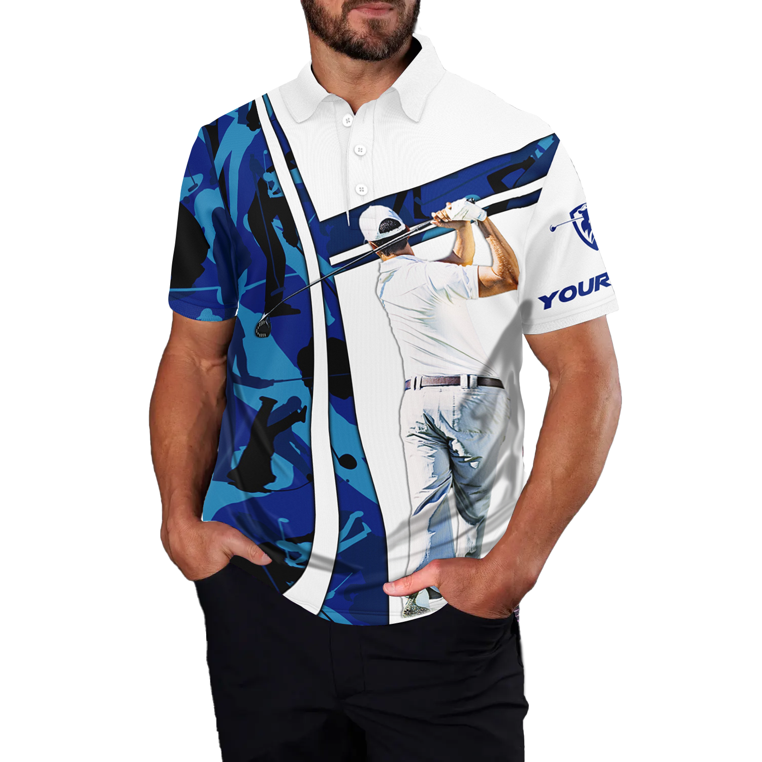 Personalisierte Herren Golf Polo mit Blauem Camouflage - Das ideale Golfgeschenk für ihn N3573