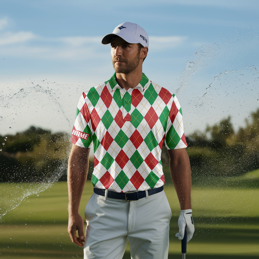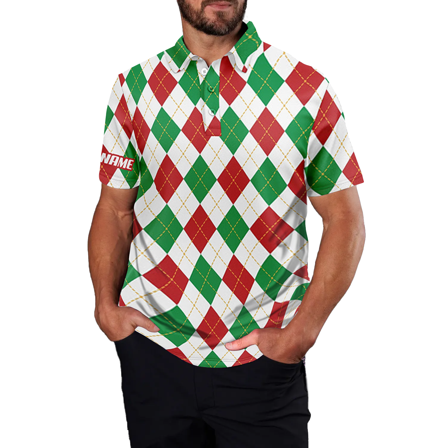 Personalisierte Weihnachts-Golfpoloshirts für Herren im karierten Argyle-Design - Ideal für Teams N4412