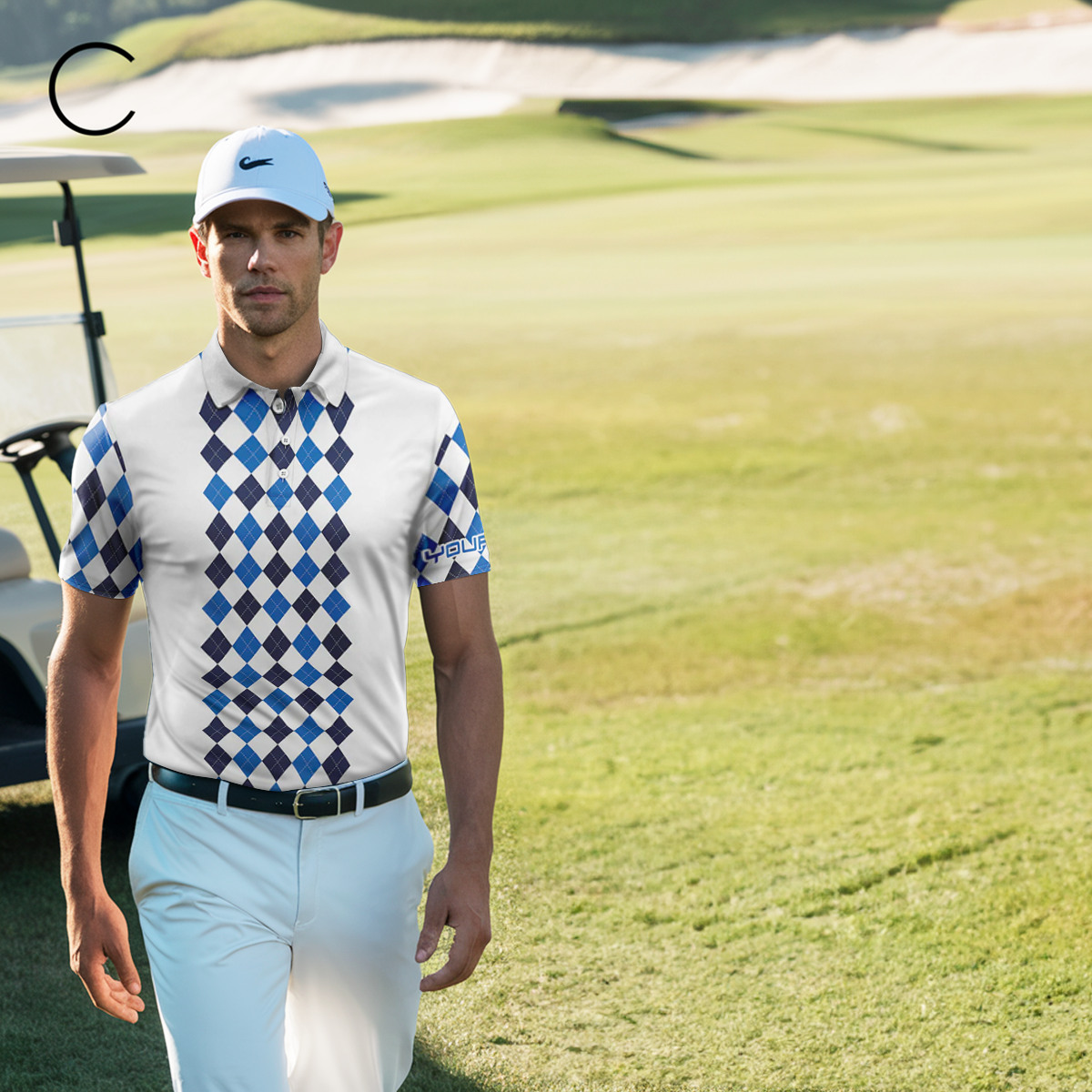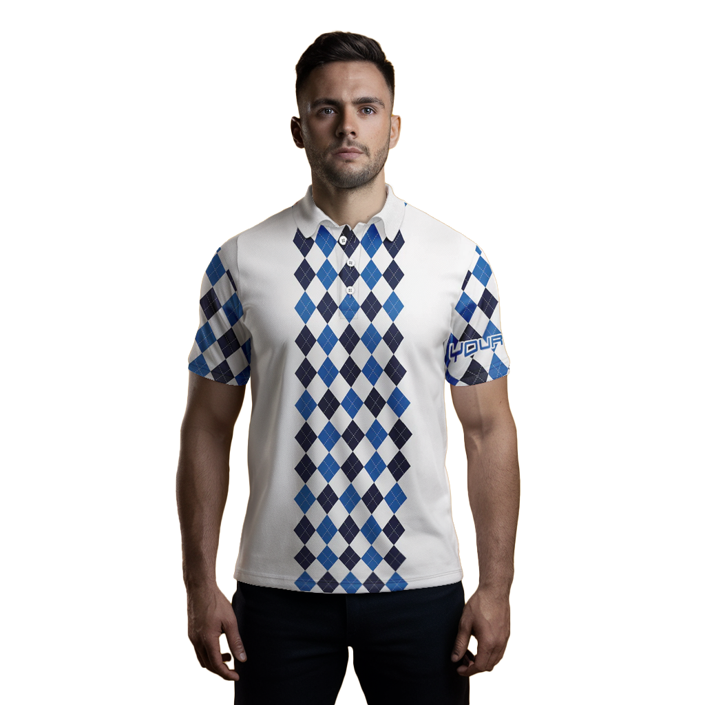 Personalisierte Herren Golf Polo mit blauem Muster – Langarmshirt als ideales Geschenk N3365