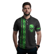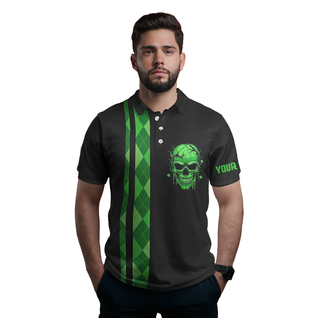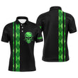 Individuelles schwarzes Herren Golf-Polo mit personalisiertem grünen Argyle-Muster und Totenkopf-Design N7269