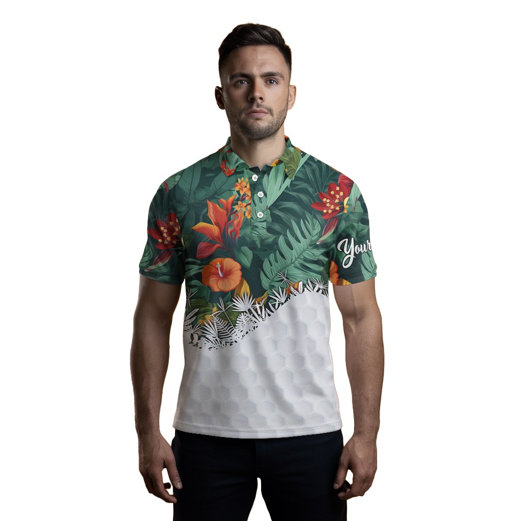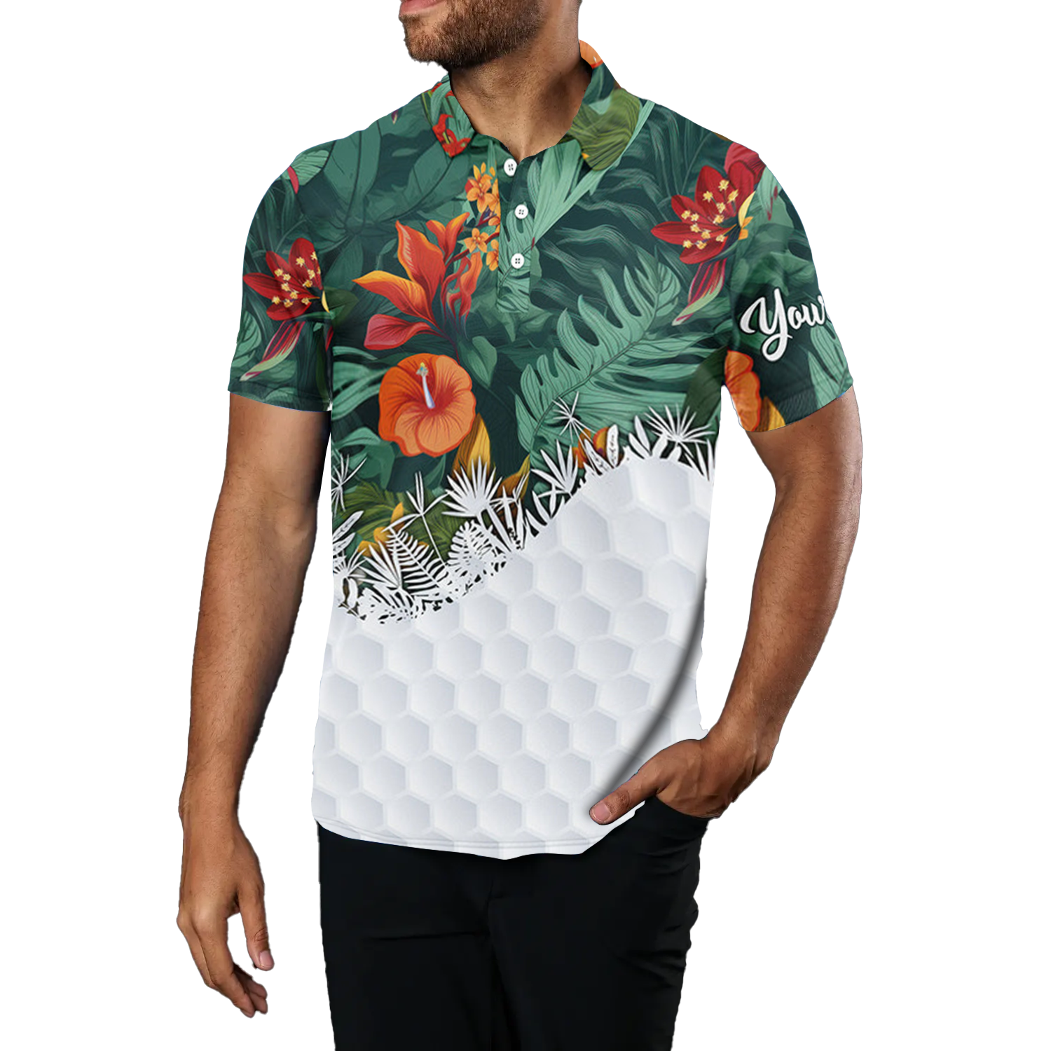 Personalisierte Herren Golf Poloshirts mit grünem Tropenpflanzen- und Blumenmuster - Die beste Wahl für stilvolle Golfbekleidung N5585