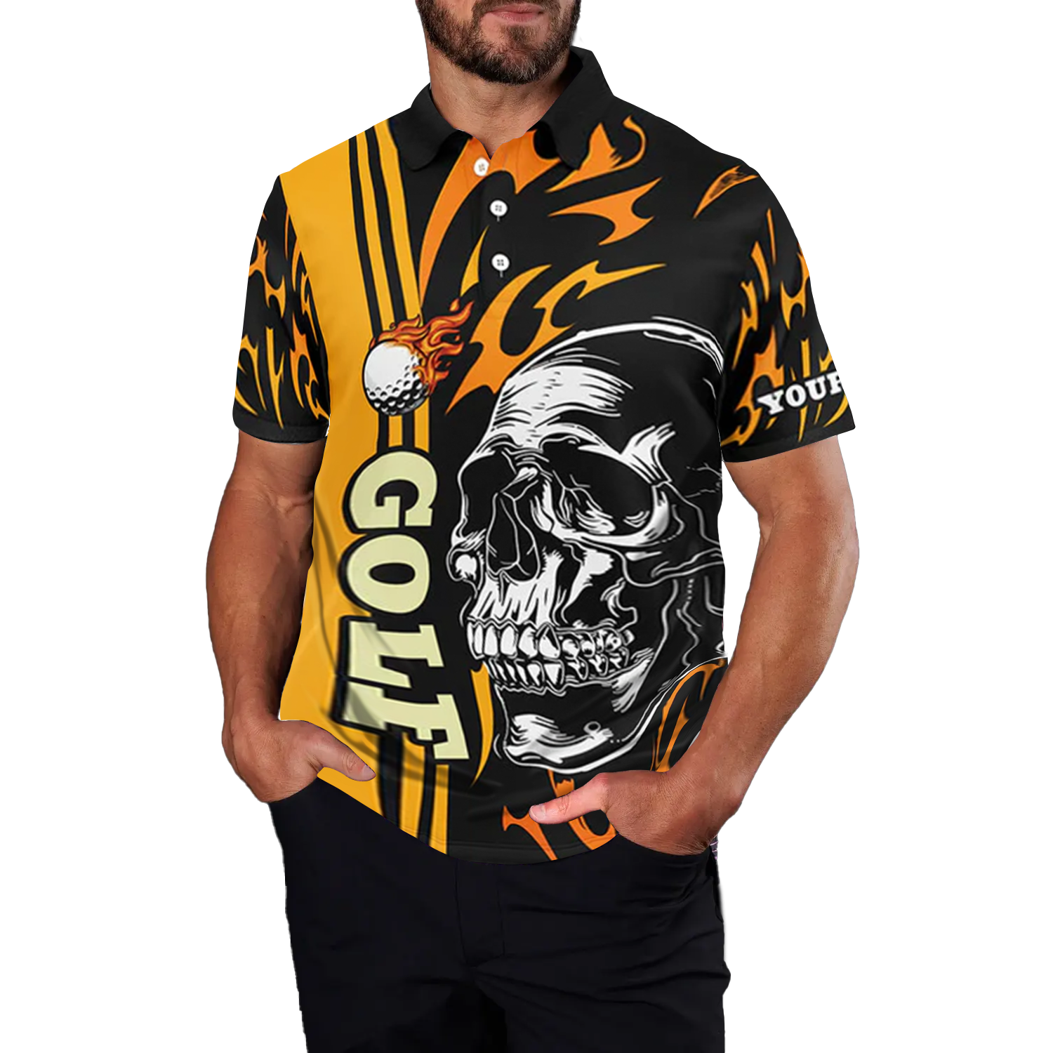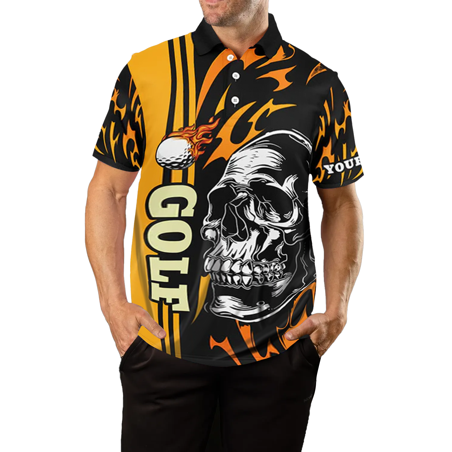 Personalisierte schwarze und gelbe Skull Golf Poloshirt für Herren - Einzigartiges Geschenk für Golfer N7274