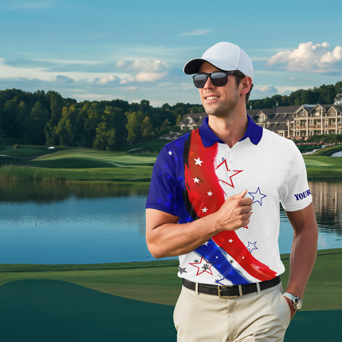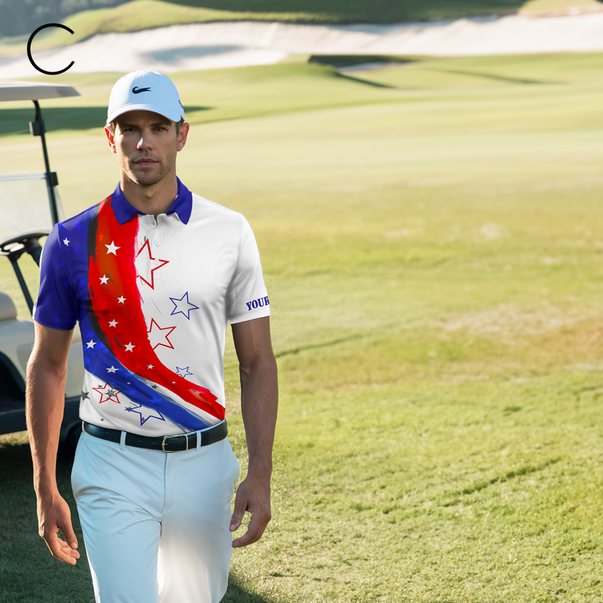 Personalisierte Polohemden für Herren mit rot-weiß-blauen Sternen - Hochwertige Golfbekleidung für Männer N7120