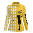 Individuelles Gelbes Damen Golf Polo-Shirt mit personalisiertem weißen Argyle-Muster N7271
