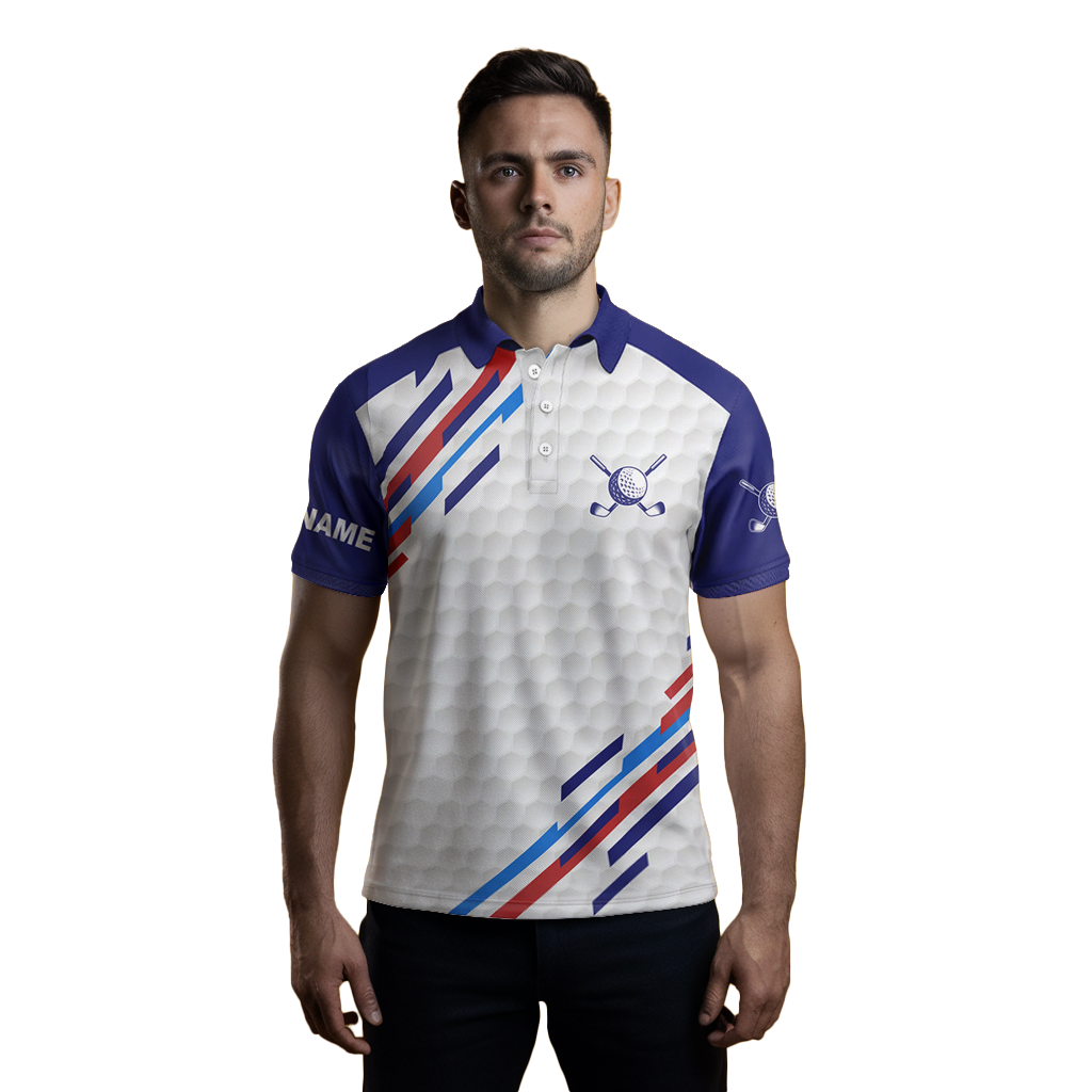 Personalisierte Herren Golfpoloshirts in Weiß und Blau – Individuelle Golfmode für Stil und Komfort N7119
