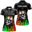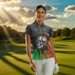Personalisierte Damen Golf Polo mit Regenbogen-Flammen-Skelett - Einzigartige Golfbekleidung für Frauen N7125