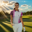 Rosa und Weiße Damen Golf Poloshirt - Individuelles Golfball-Design - Stilvolles Golfoberteil für Frauen N7188