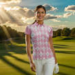 Damen Golf Polo-Shirt mit rosa Argyle-Muster N5156