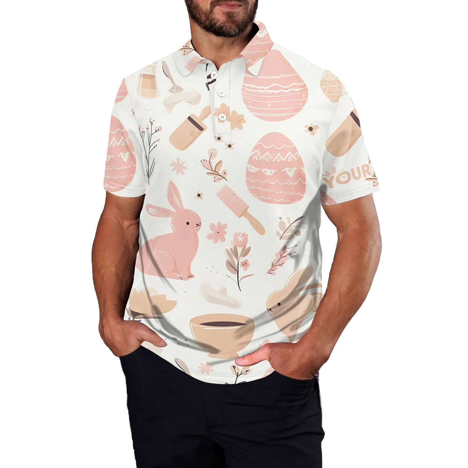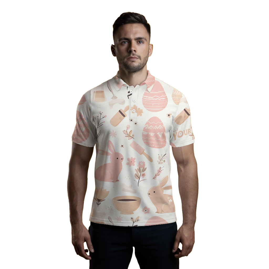 Herren Golf Polo-Shirt mit rosa Ostereiern & Hasen – Individuelles Oster-Design L1332