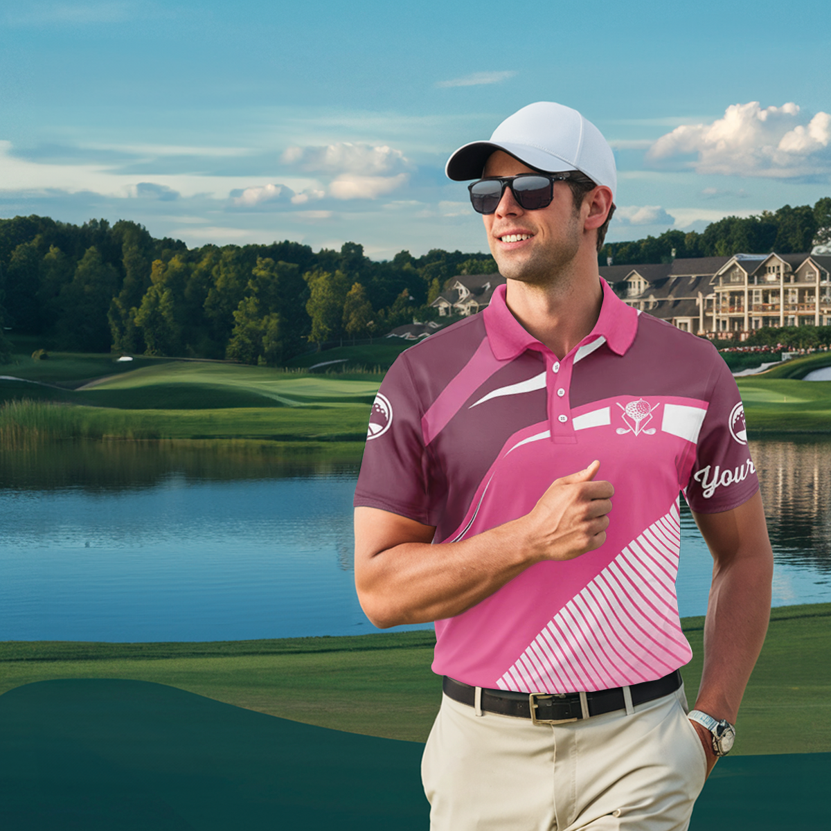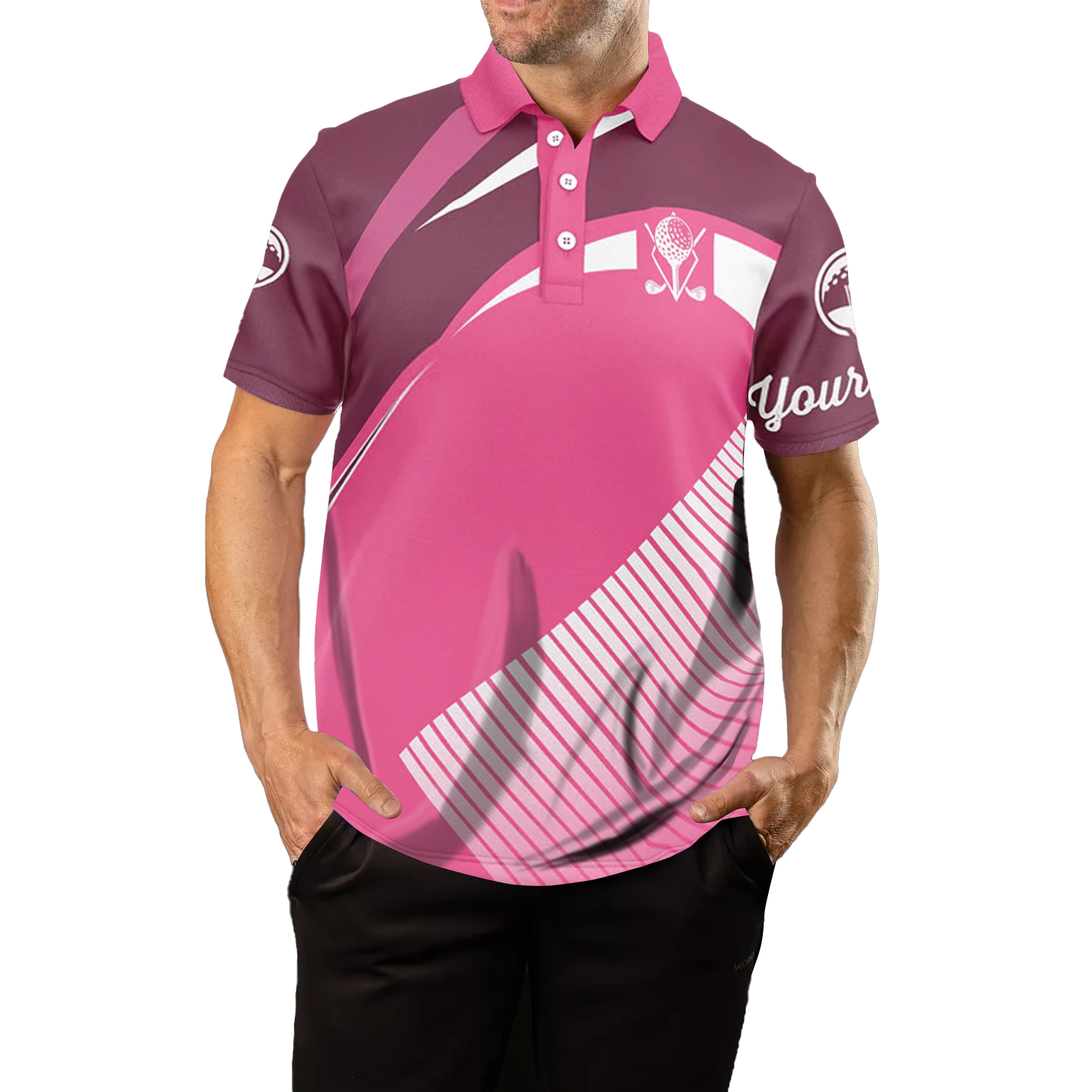Herren Golf Poloshirts in Pink - Individuelle Golfoberteile für Männer, Perfekte Golfgeschenke N7128