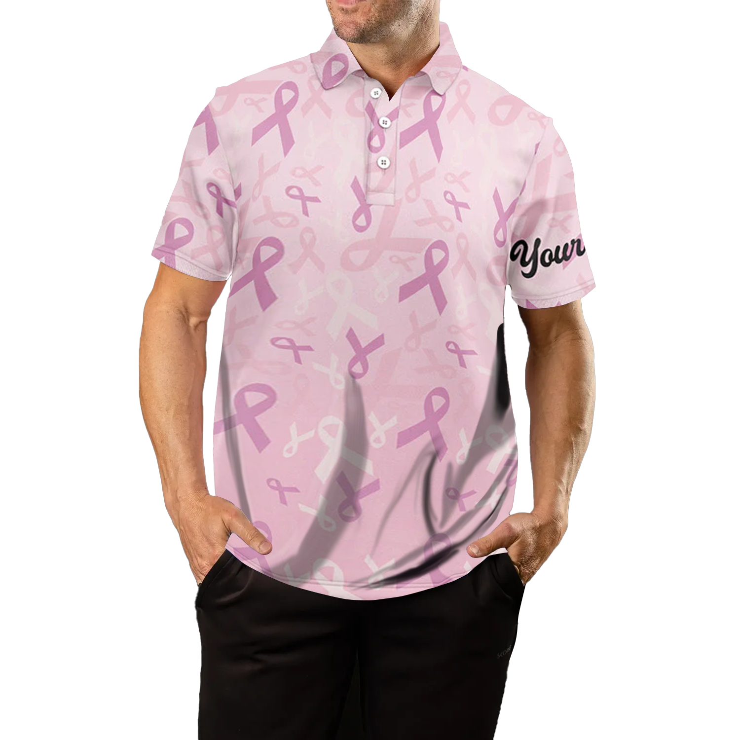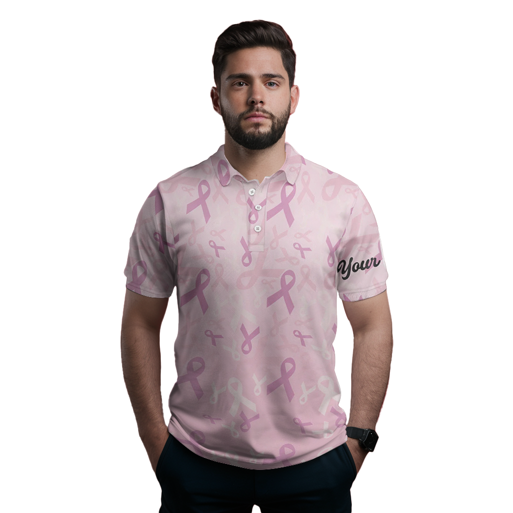 Personalisierte Herren Golf Poloshirts mit pinkem Schleifen-Motiv zur Unterstützung der Brustkrebsbewusstseinskampagne N6377